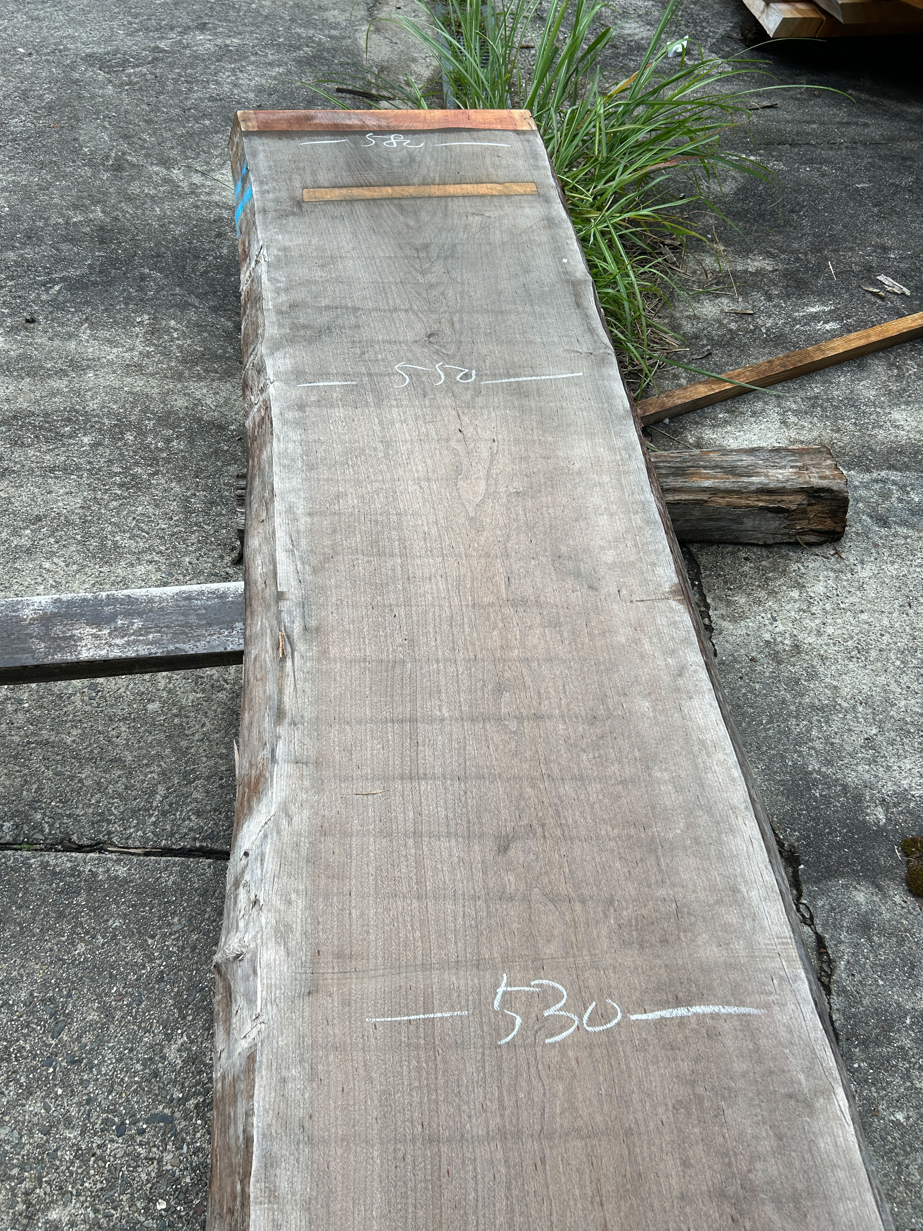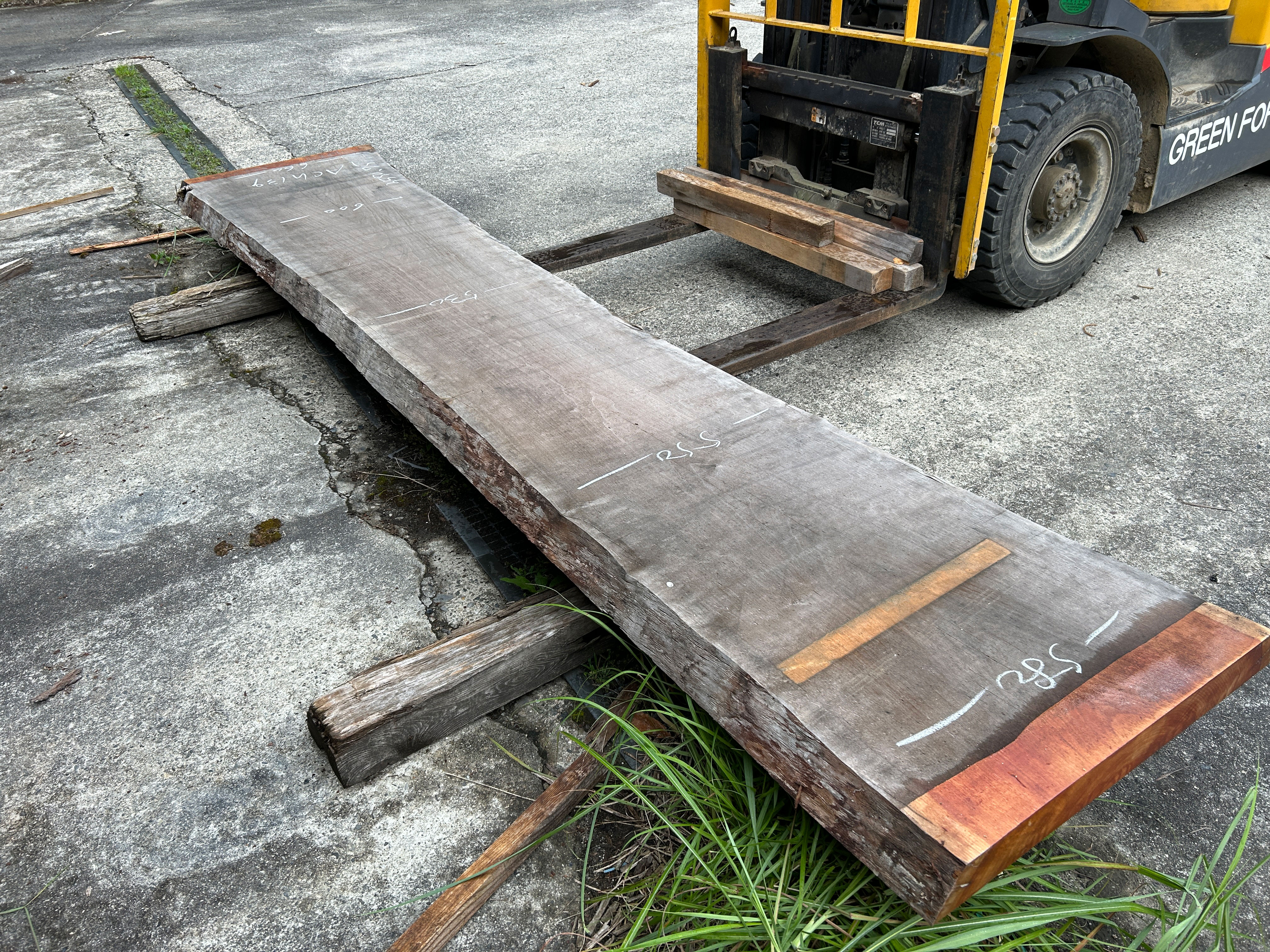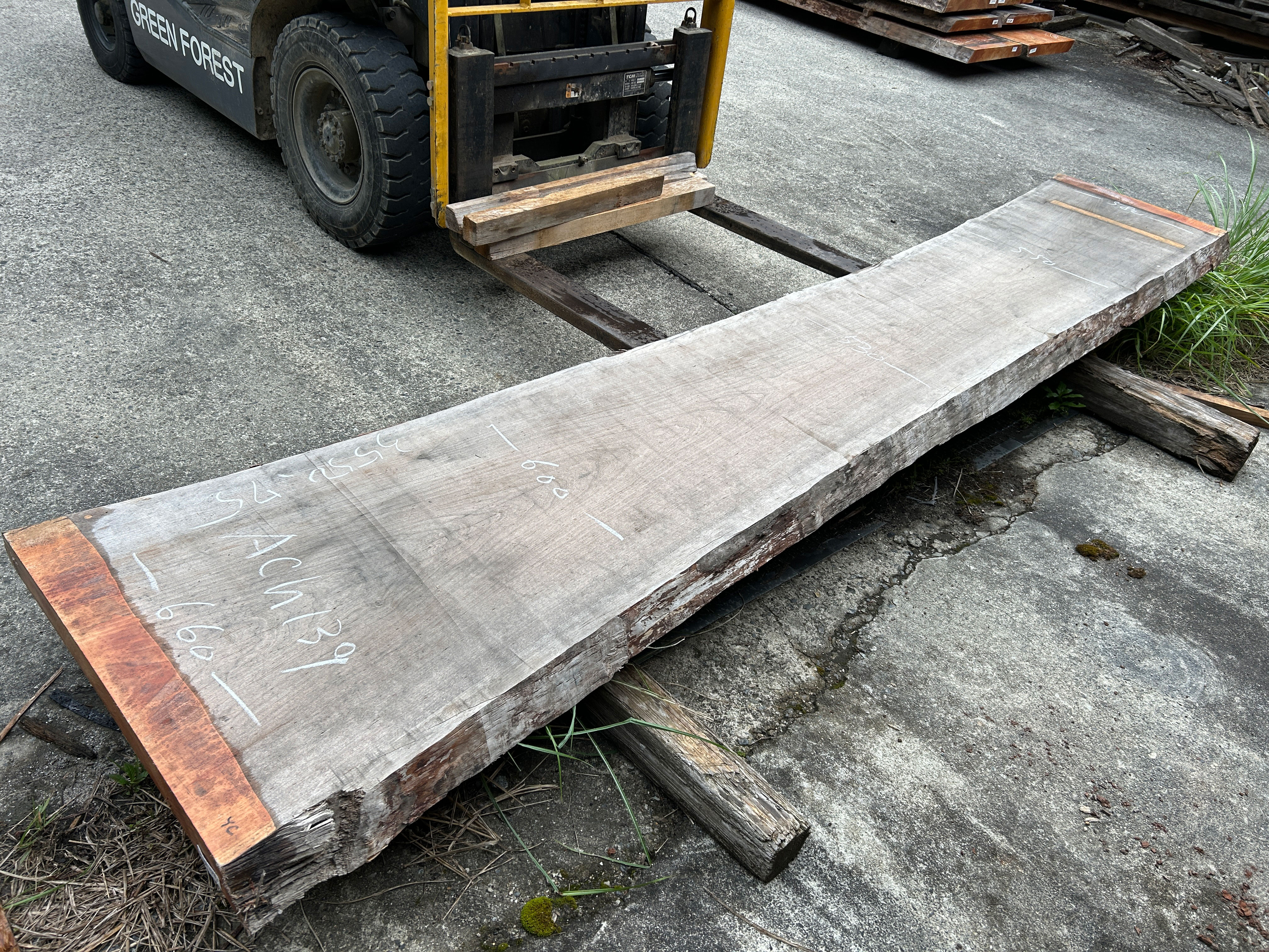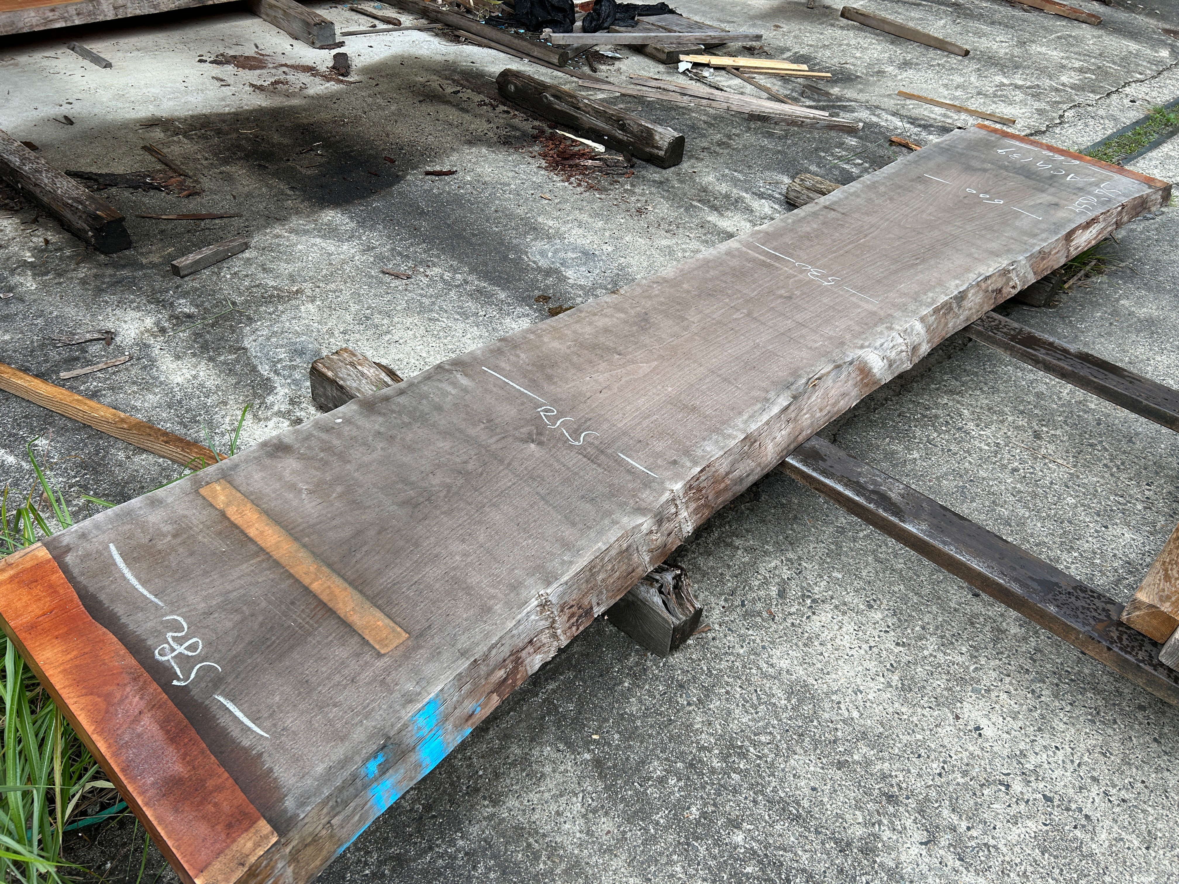 【取引状態】NEW! 【名 称】アメリカンブラックチェリー一枚板ACH139 【樹 種】アメリカンブラックチェリー(外国産) 【サイズ】L3550*W580~530~660*t75 【仕上げ】仕上げ加工なし 【価 格】¥220,000(税別) 【説 明】アメリカンブラックチェリーのカウンター用一枚板です。節のない綺麗な板です。くすんだ色になっていますが削ると鮮やかな色合いです。 乾燥材 加工費別途