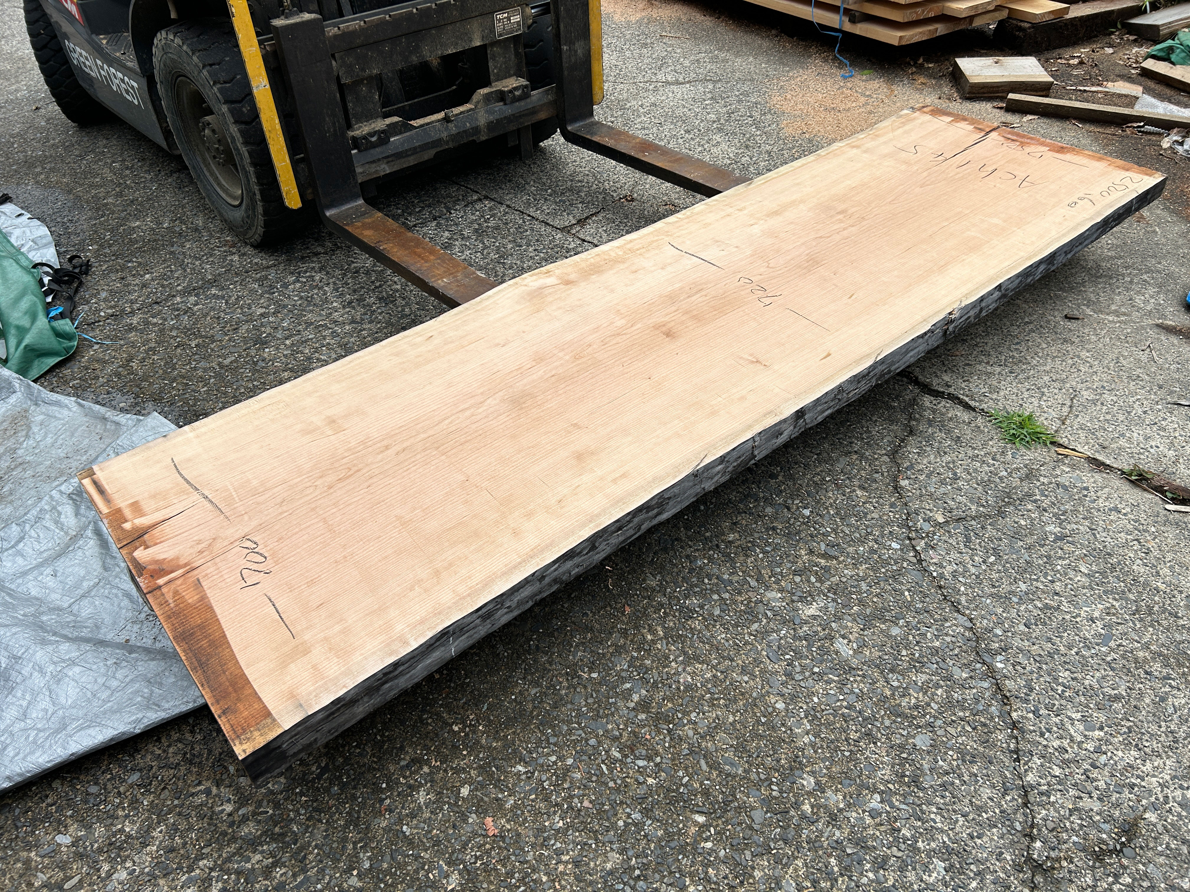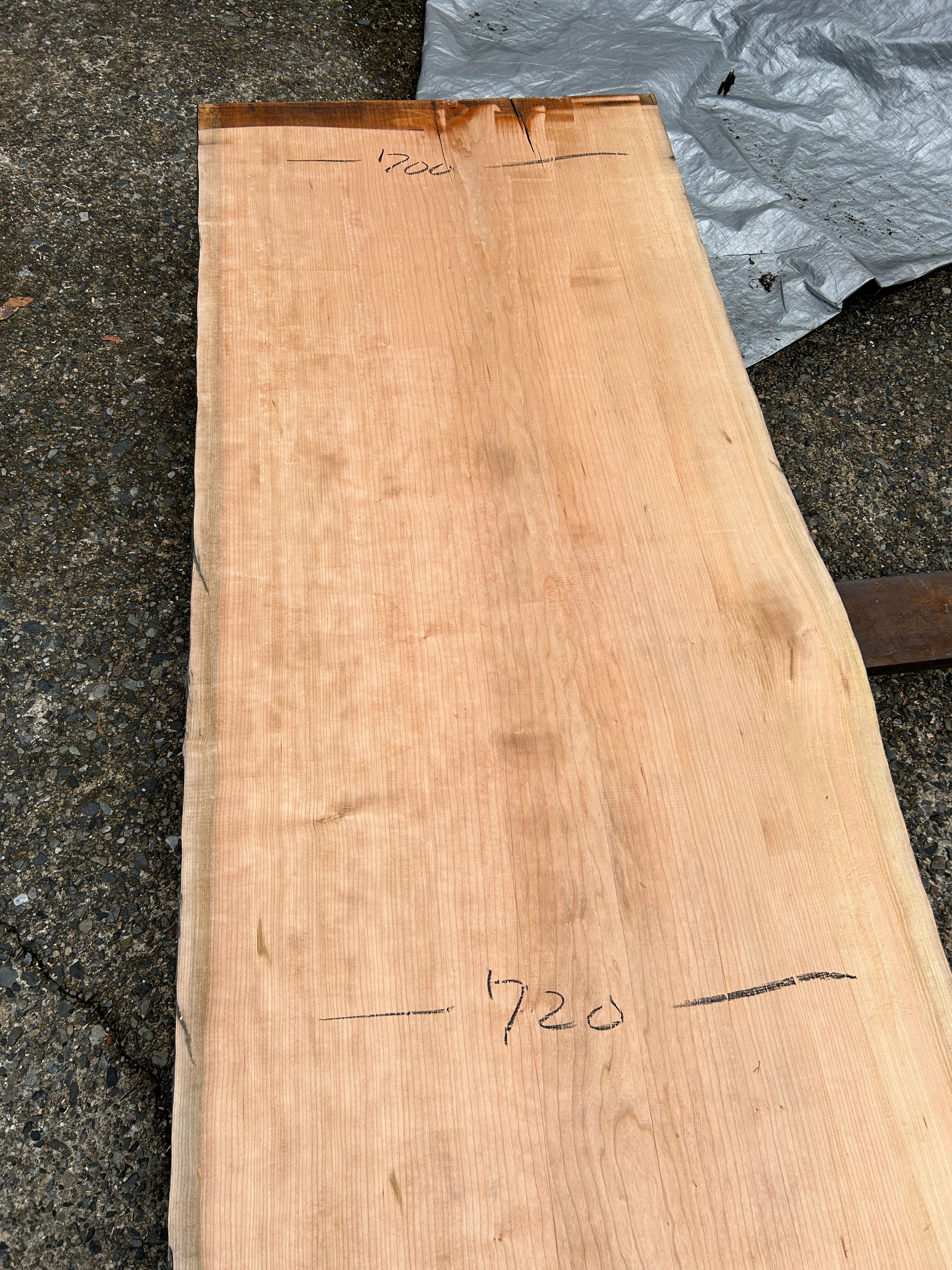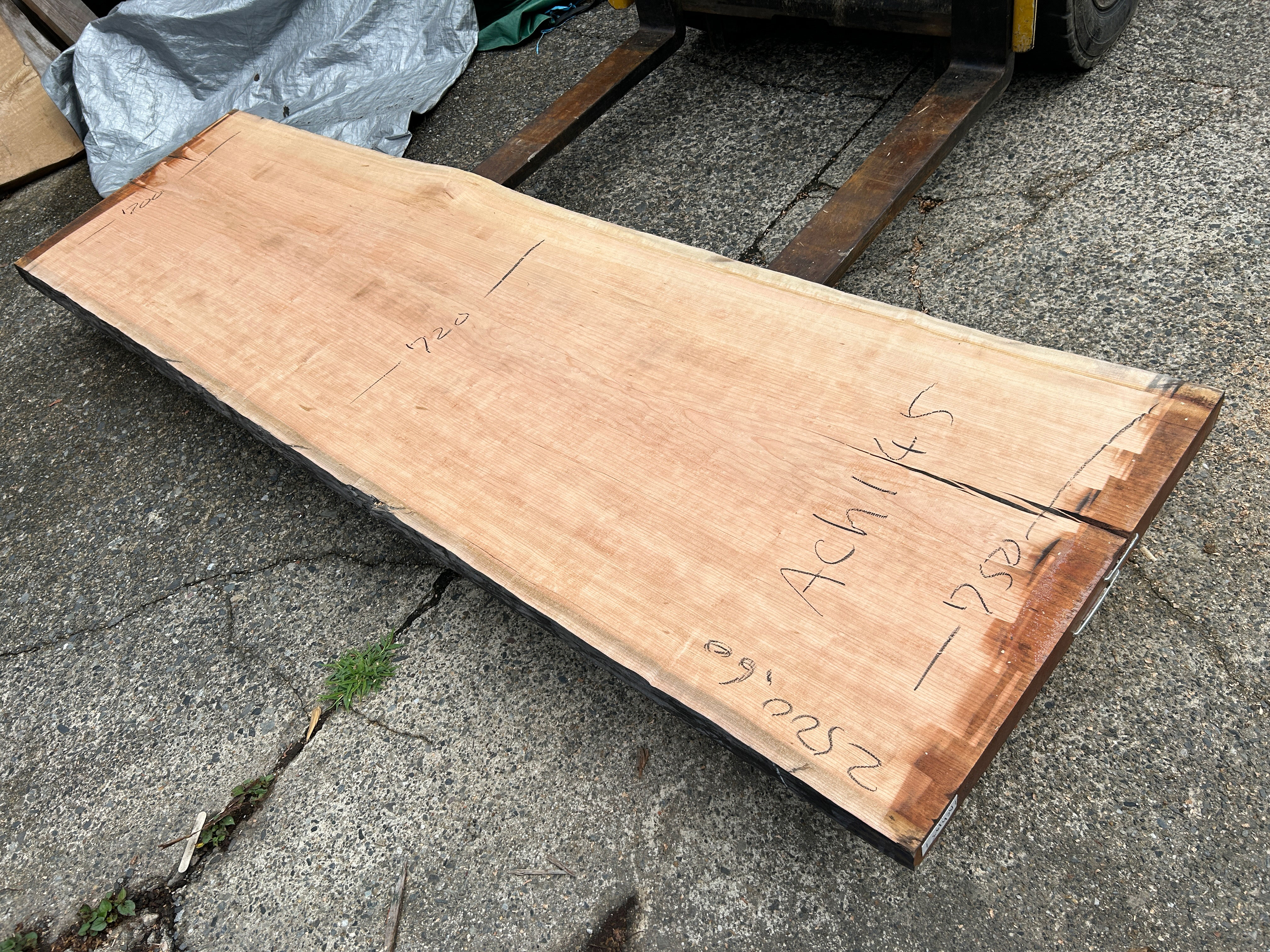 【取引状態】NEW! 【名 称】アメリカンブラックチェリーACH145 【樹 種】アメリカンブラックチェリー(外国産) 【サイズ】L2500*W700~720~750*t60 【仕上げ】仕上げ加工なし 【価 格】¥130,000(税別) 【説 明】2.5m幅700サイズのアメリカンブラックチェリーの一枚板、スリムなサイズのテーブルやカウンターにいかがでしょうか? 乾燥材、加工費別途、2mサイズに加工する場合別途¥73,000
