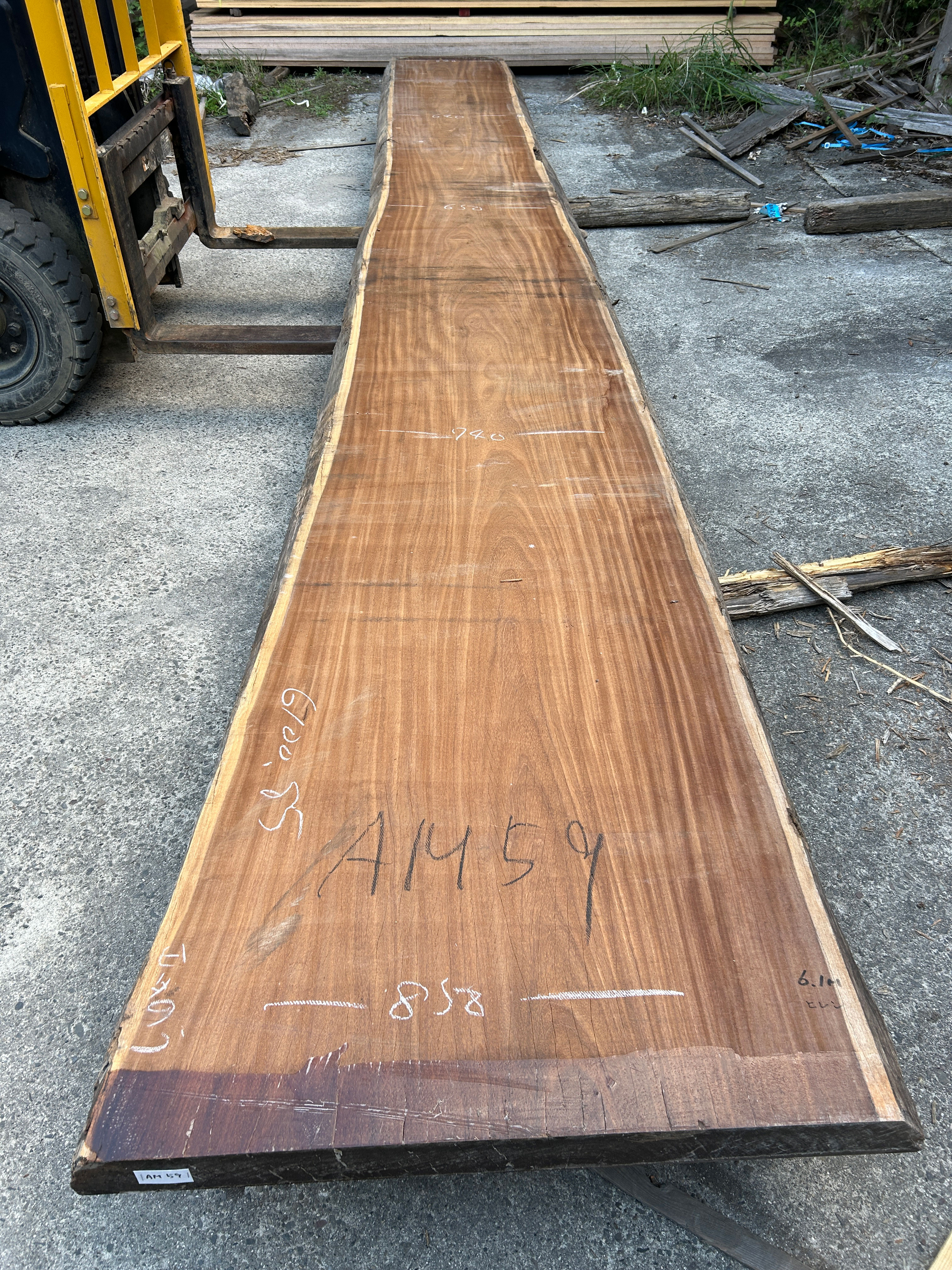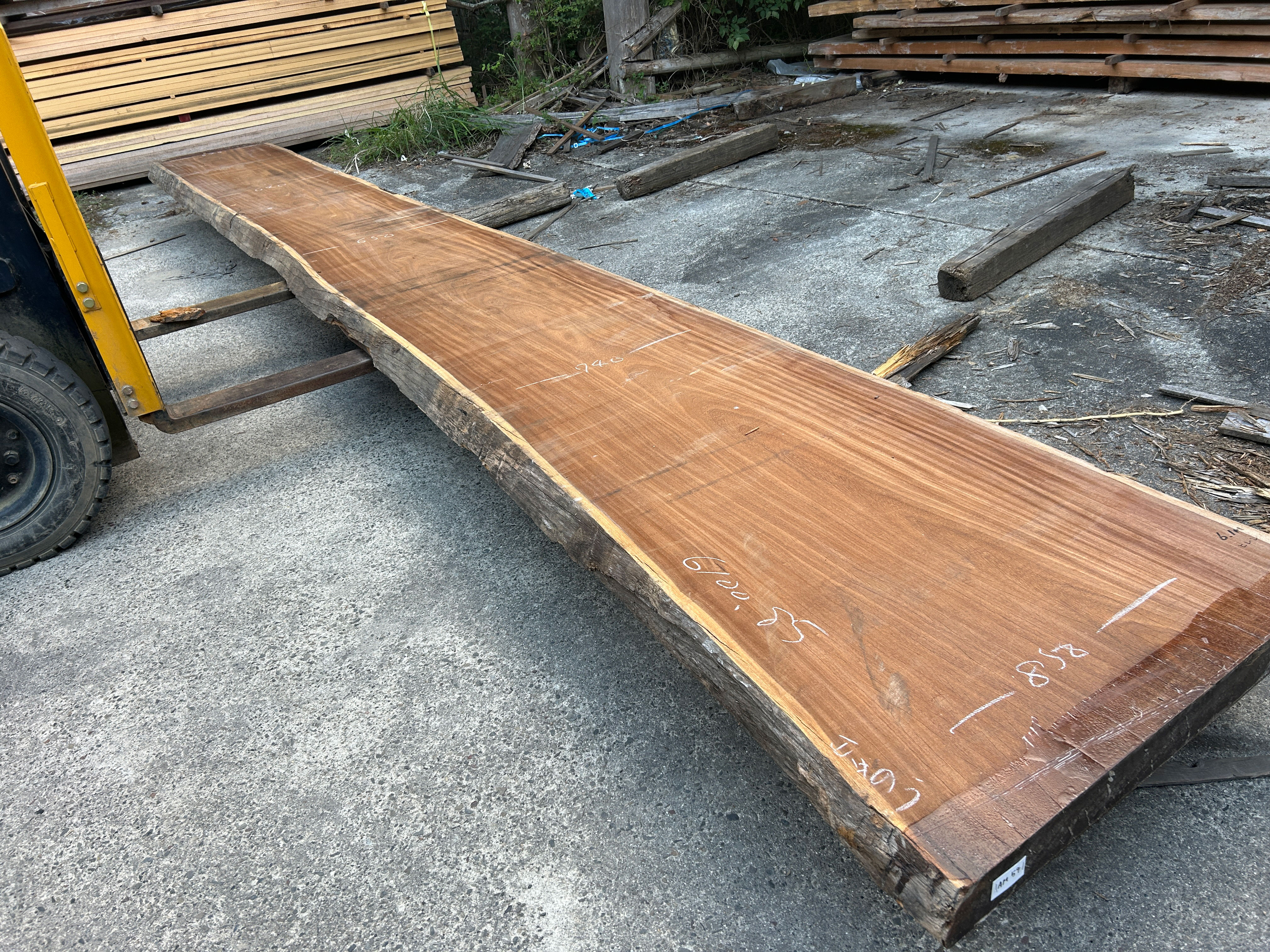 【取引状態】NEW! 【名 称】アサメラ一枚板AM59 【樹 種】アサメラ(アフリカ産) 【サイズ】L6100*640~650~850*t85 【仕上げ】仕上げ加工なし 【価 格】¥505,000(税別) 【説 明】長尺6mのアサメラの一枚板です。 近年輸入が少なくなり貴重な材料となっています。店舗用カウンターにいかがでしょうか? 乾燥材 加工費別途