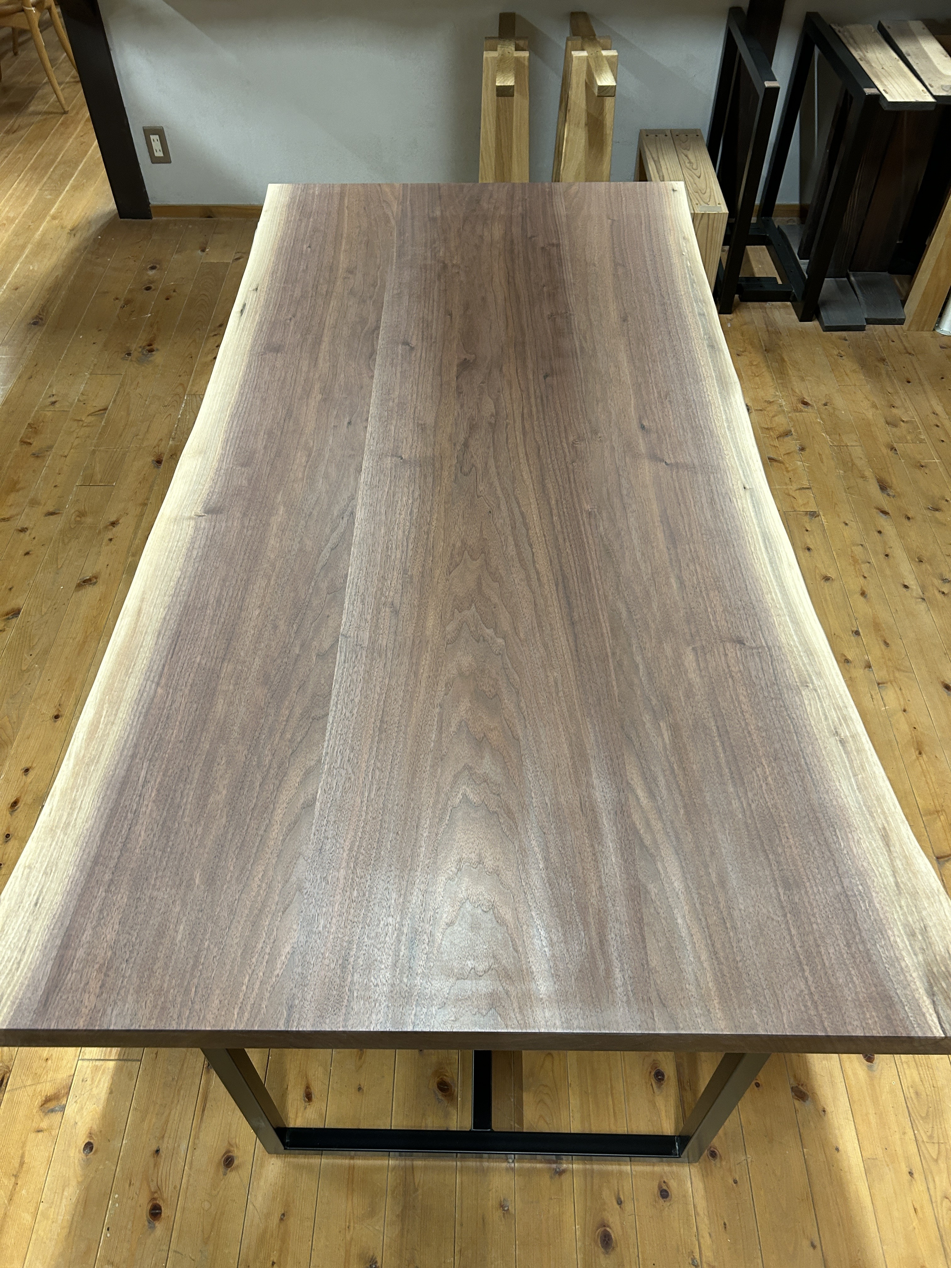 【取引状態】販売済 【名 称】ウォールナット3枚ハギダイニングテーブルbws-11dt 【樹 種】ウォールナット(外国産) 【サイズ】L1800*W900~890~1020*t50 h700 【仕上げ】オイルウレタン(オリオ2) 【価 格】¥285,000(税別) 【説 明】節の無い上品なウォールナットの3枚ハギダイニングテーブルです。 4人~6人用にいかがでしょうか?A-3アイアン脚付き 配送費別途