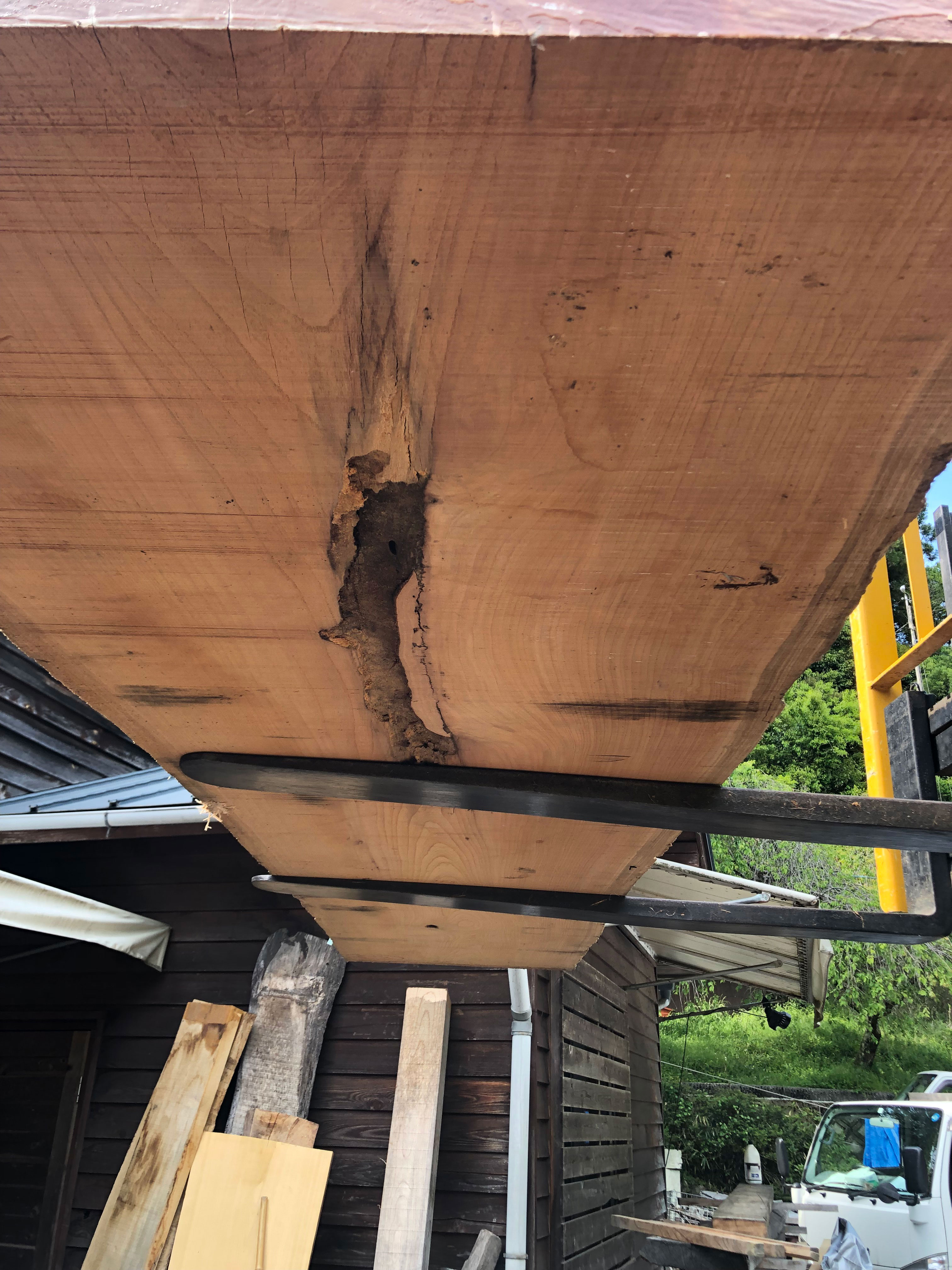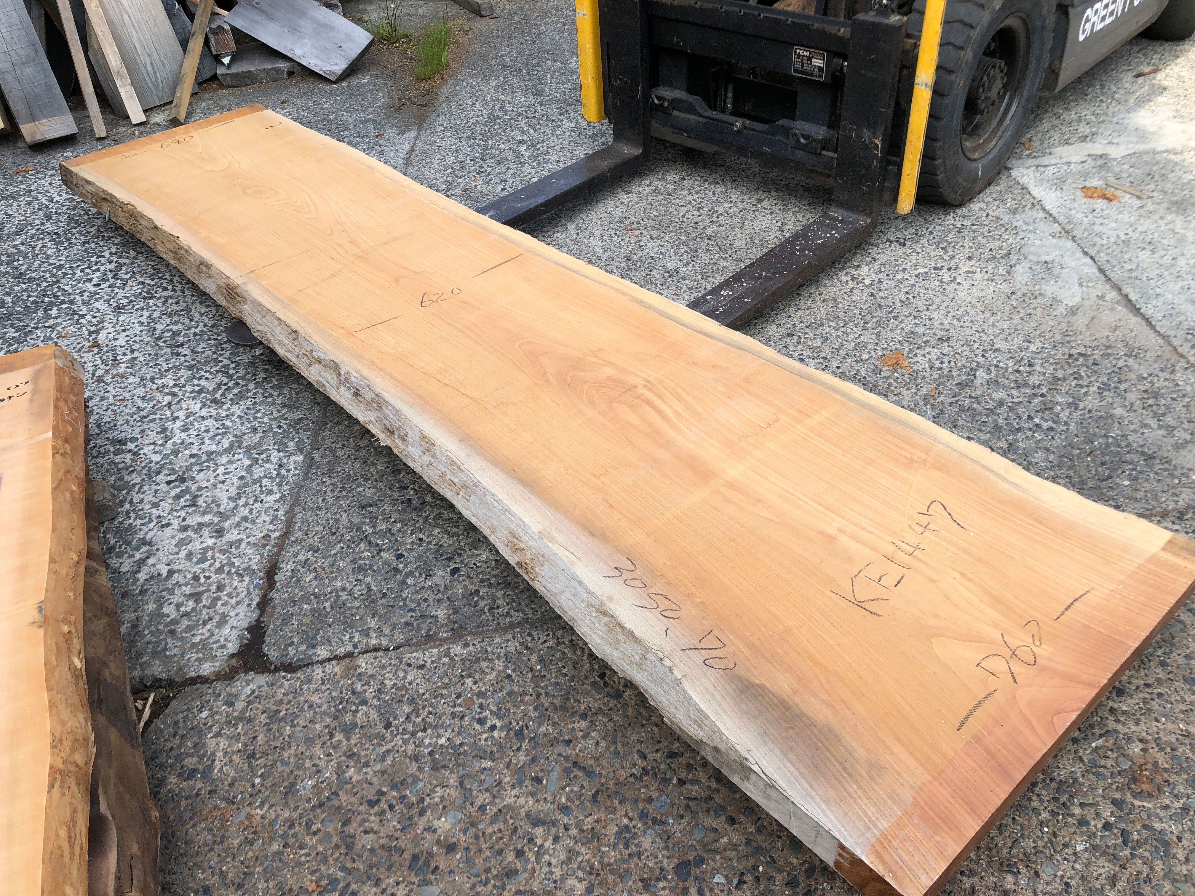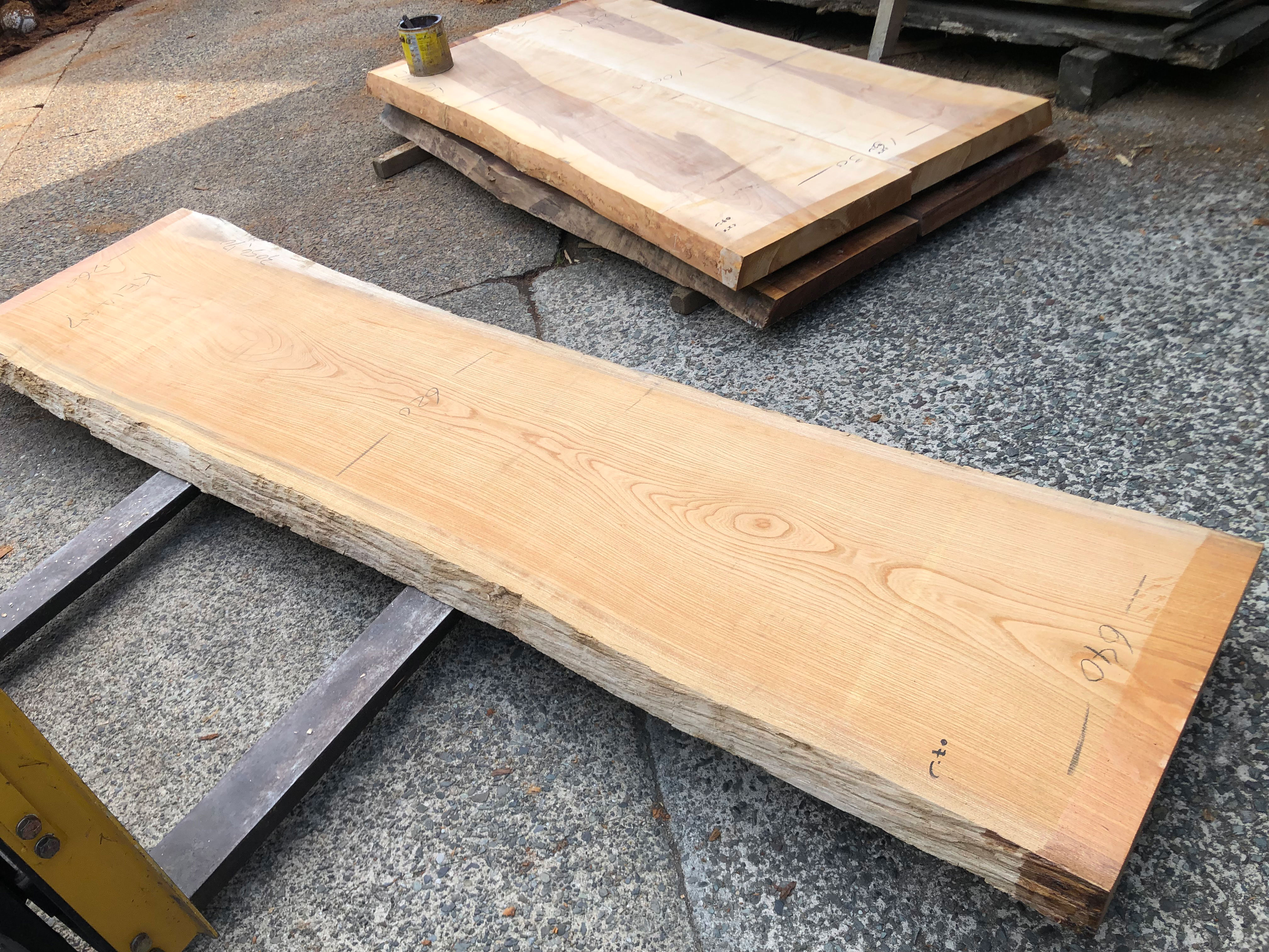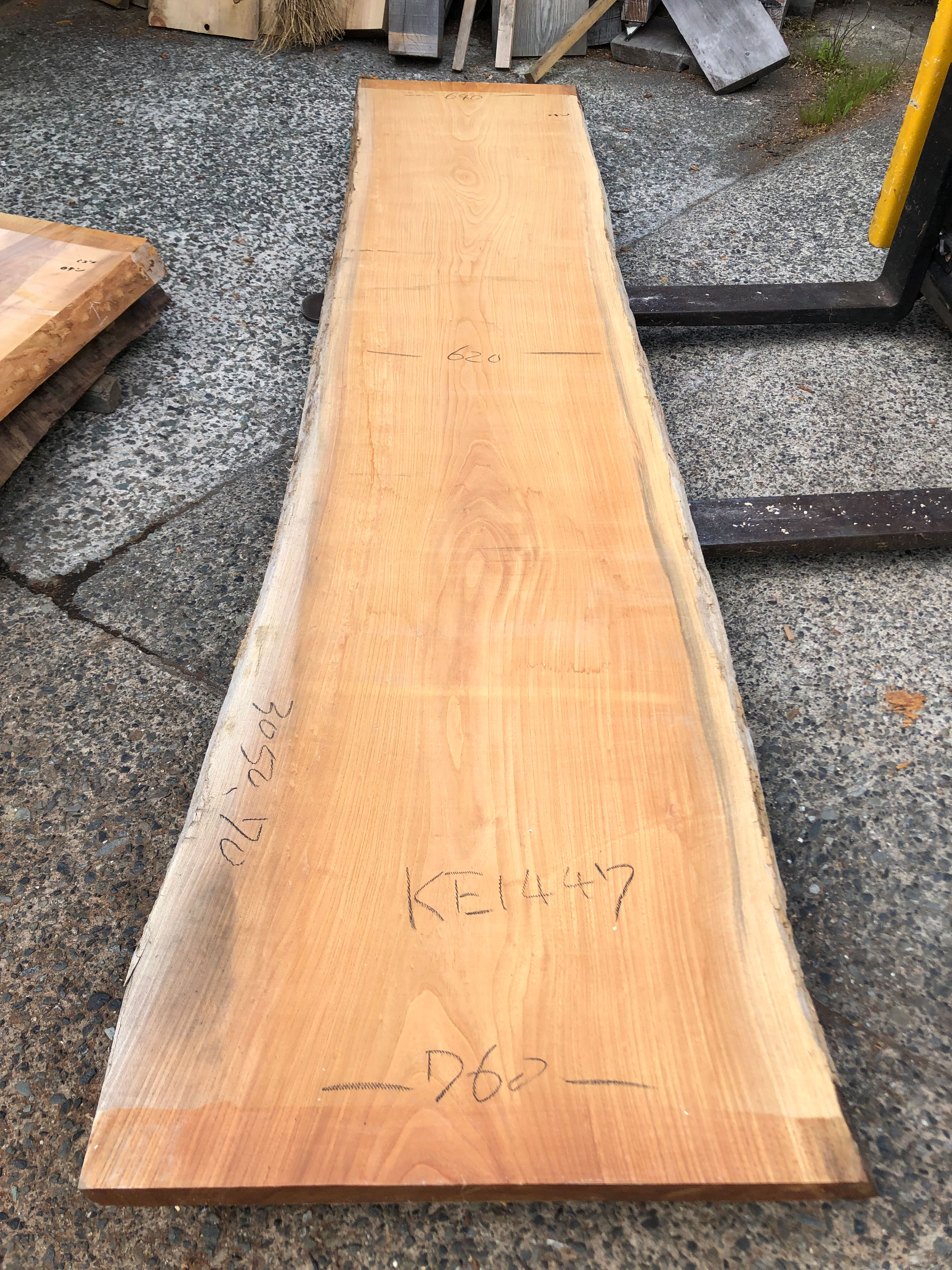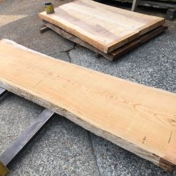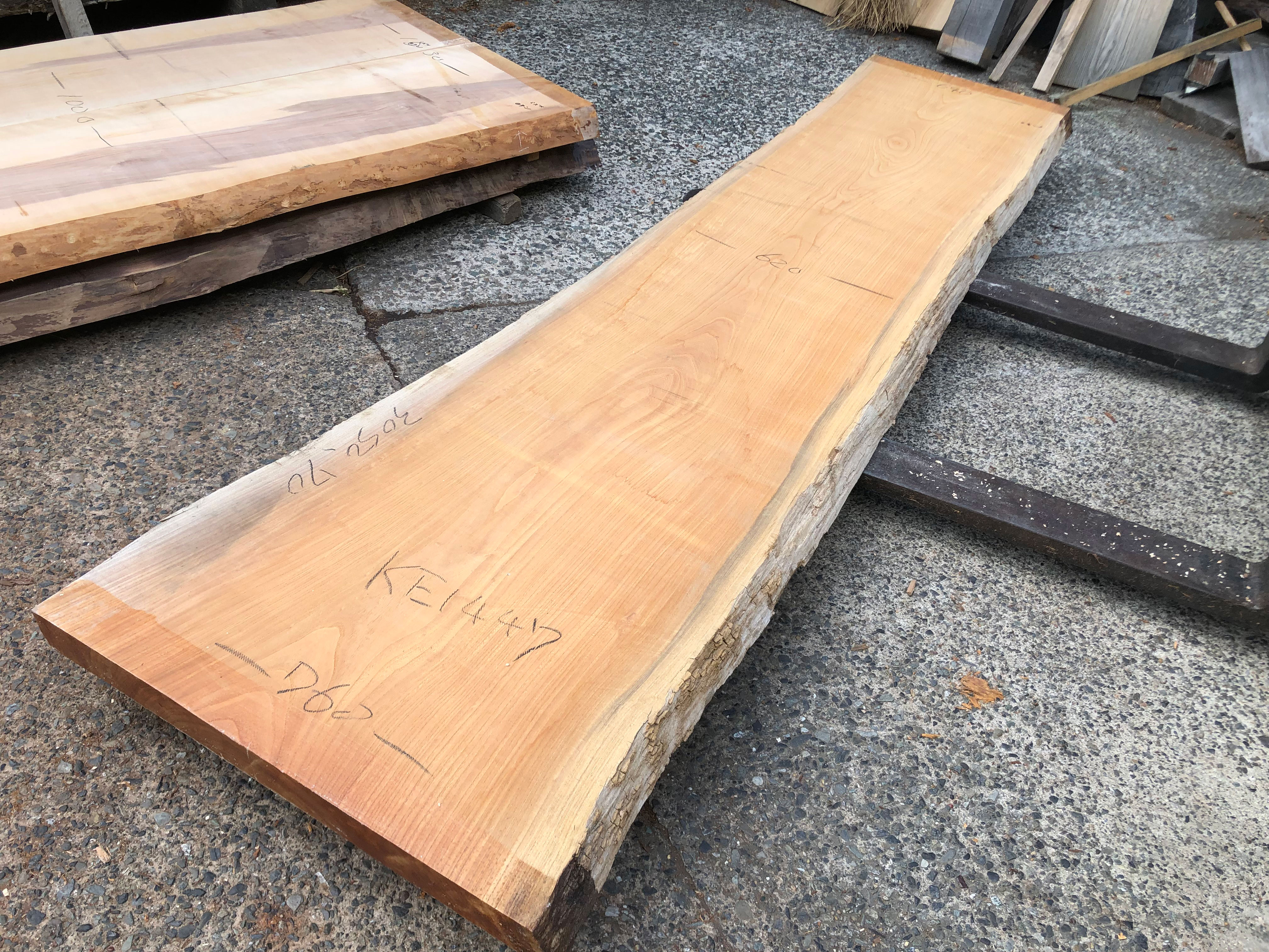 【取引状態】販売済 【名 称】欅一枚板ke1447 【樹 種】欅(国産) 【サイズ】L3050*W640~620~760*t70 【仕上げ】仕上げ加工なし 【価 格】¥158,000(税別) 【説 明】大きな節のない上品な欅の一枚板です。 カウンターや玄関式台にいかがでしょうか? 乾燥材、加工費別途