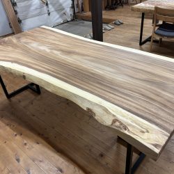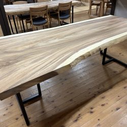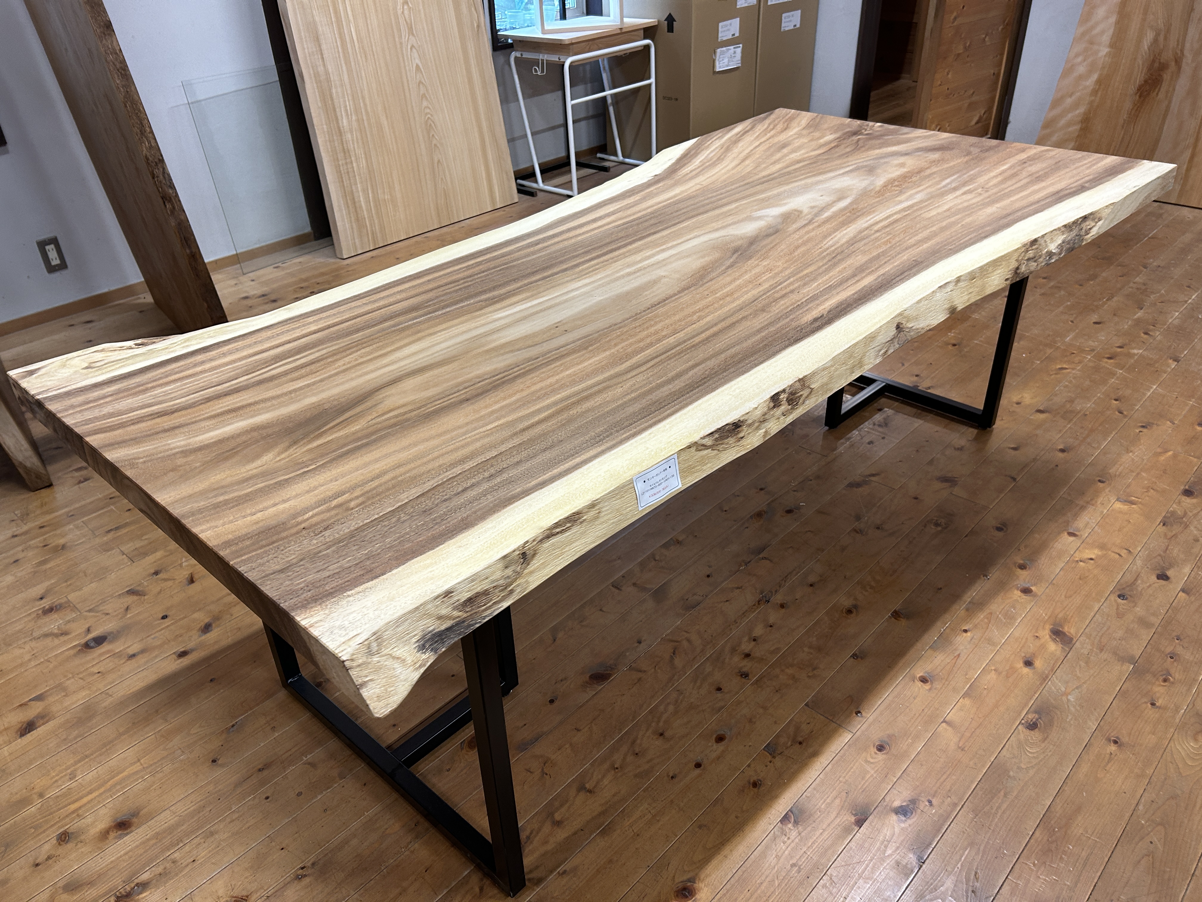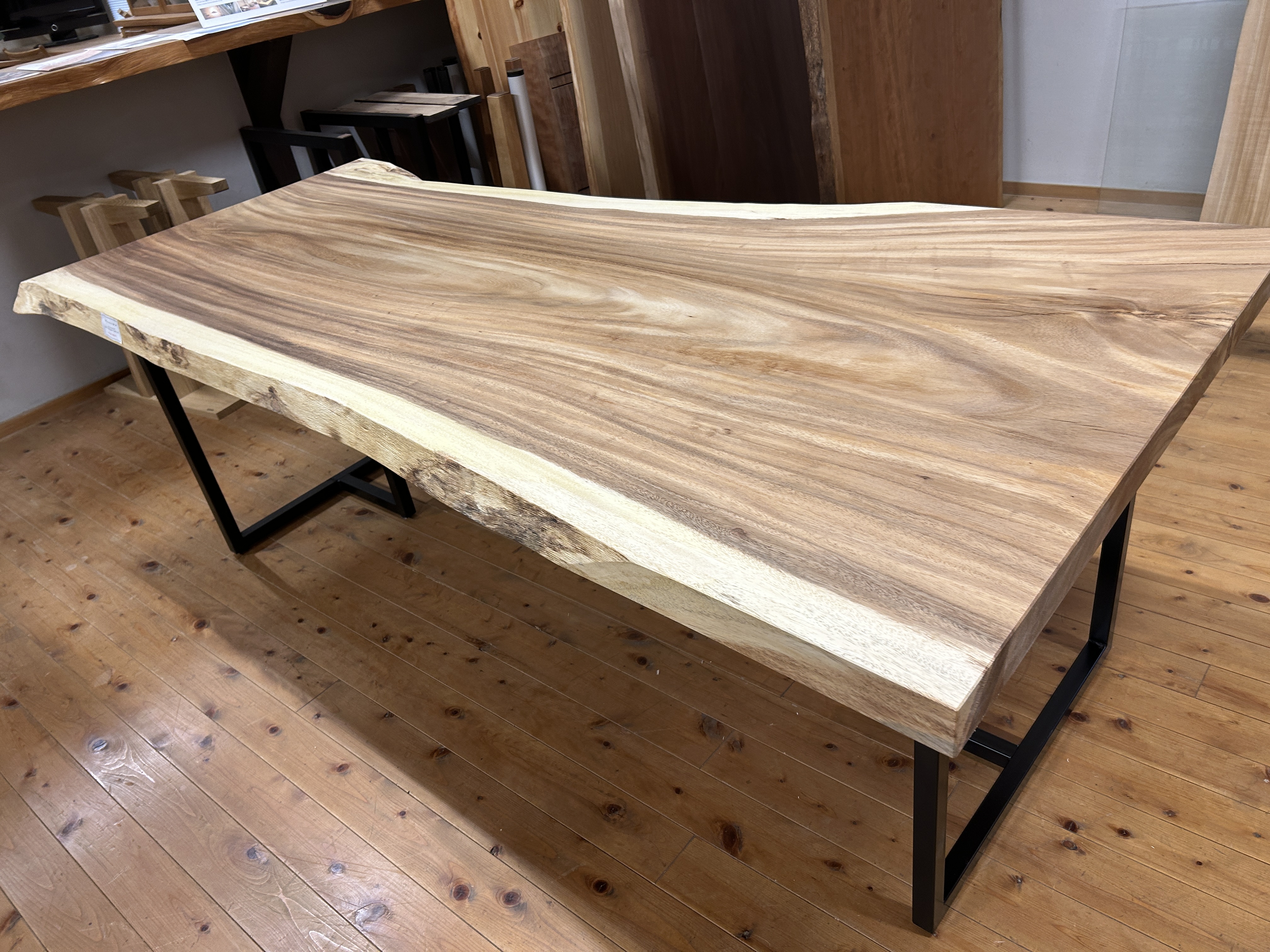 【名 称】モンキーポッドダイニングテーブルMP-10dt 【樹 種】モンキーポッド(外国産) 【サイズ】L2110*W870~820~1040*t55 h705 【仕上げ】オイルウレタン(オリオ2) 【価 格】¥325,000(税別) 【説 明】大人気のモンキーポッド一枚板です。 6人~8人用のダイニングテーブルにいかがでしょうか? A-3アイアン脚付き価格です。 配送費別途