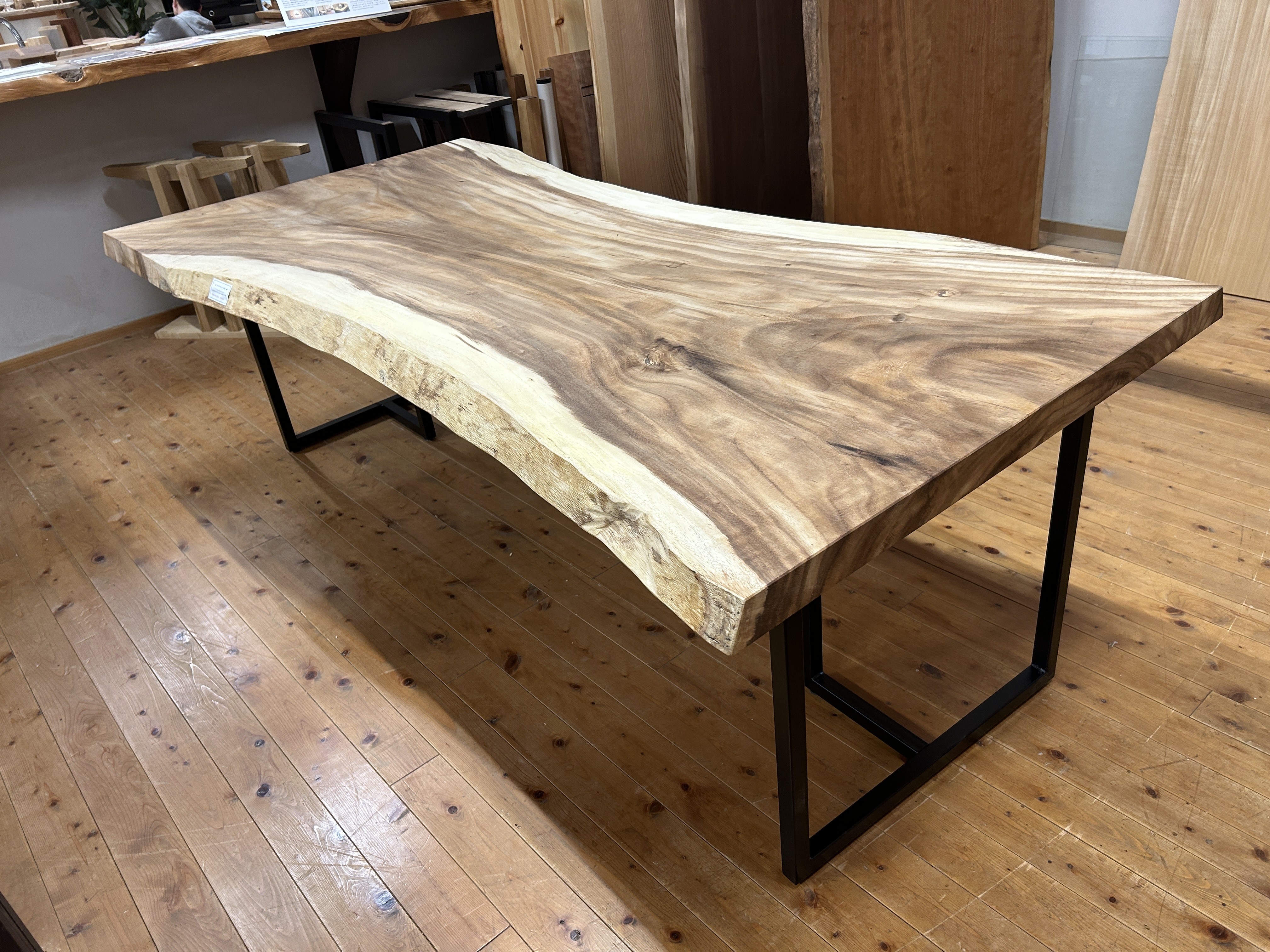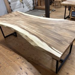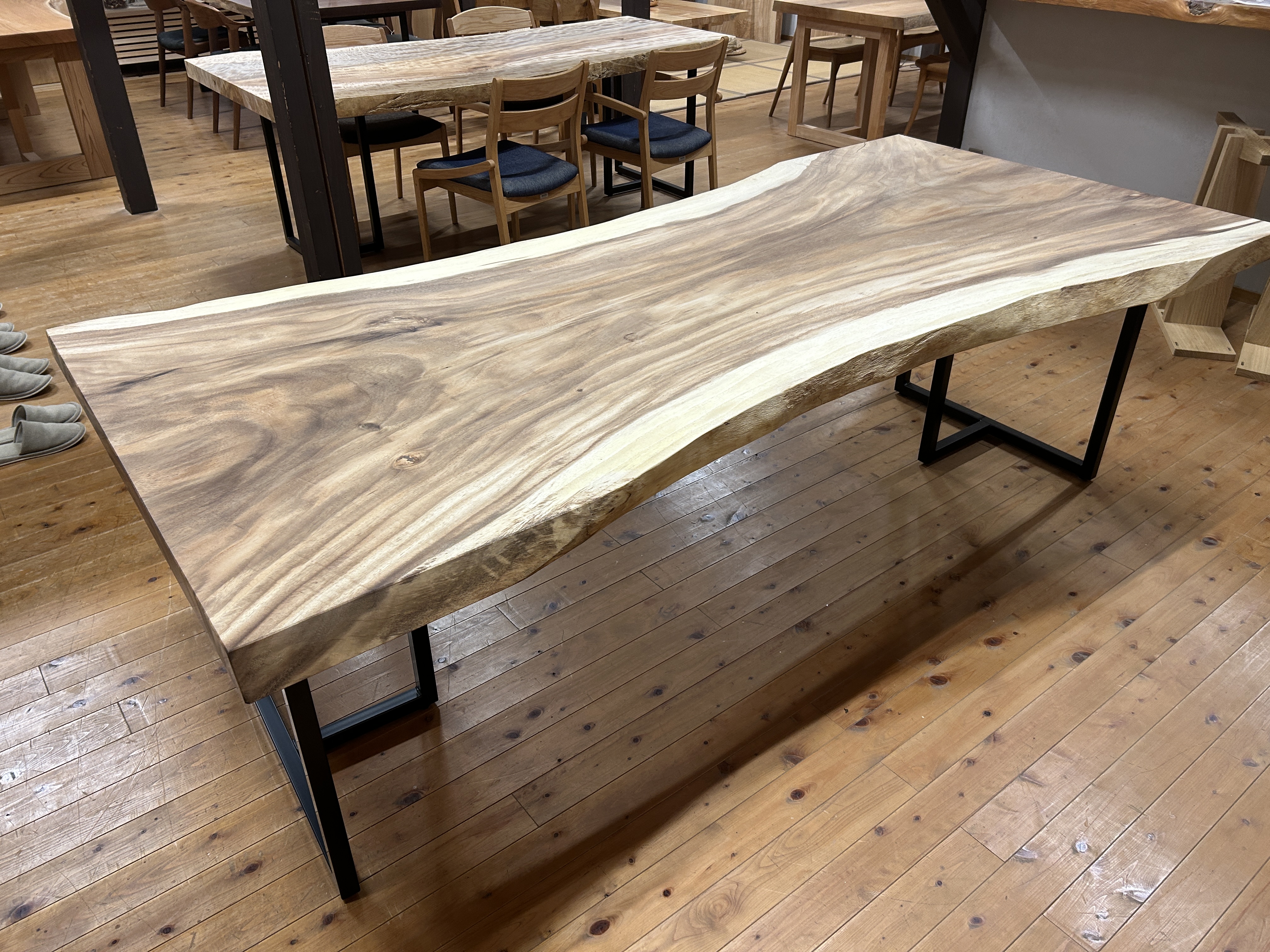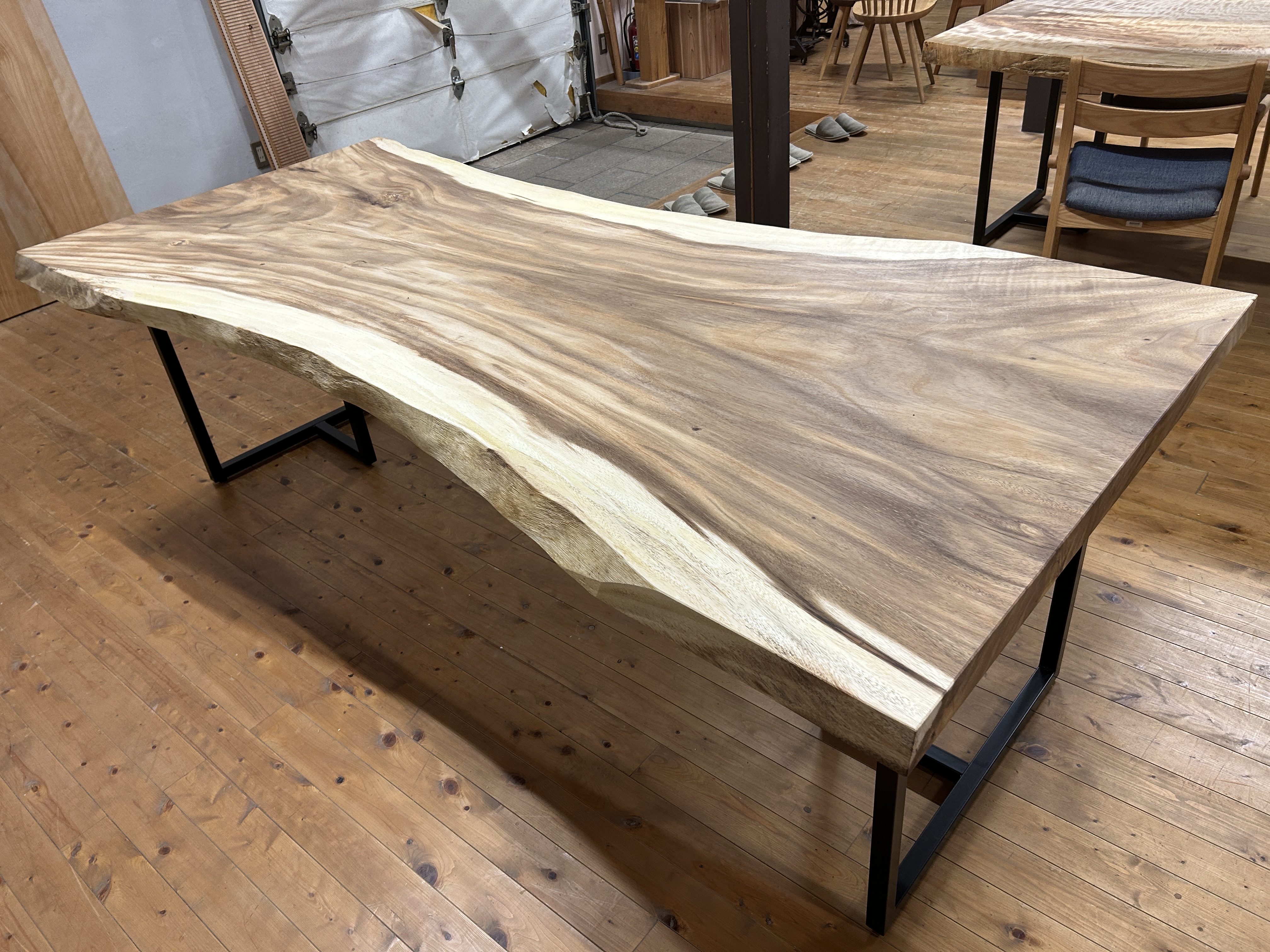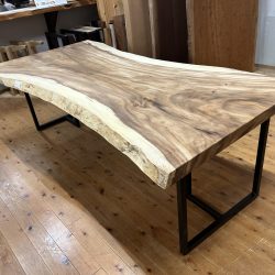 【取引状態】販売済 【名 称】モンキーポッドダイニングテーブルMP-11dt 【樹 種】モンキーポッド(外国産) 【サイズ】L2245*W1070~820~990*t58 h708 【仕上げ】オイルウレタン(オリオ2) 【価 格】¥372,000(税別) 【説 明】大人気のモンキーポッドの一枚板を使ったダイニングテーブルです。 2.2mのビッグサイズで6人~8人用にいかがでしょうか? A-3アイアン脚が付属しています。 配送費別途