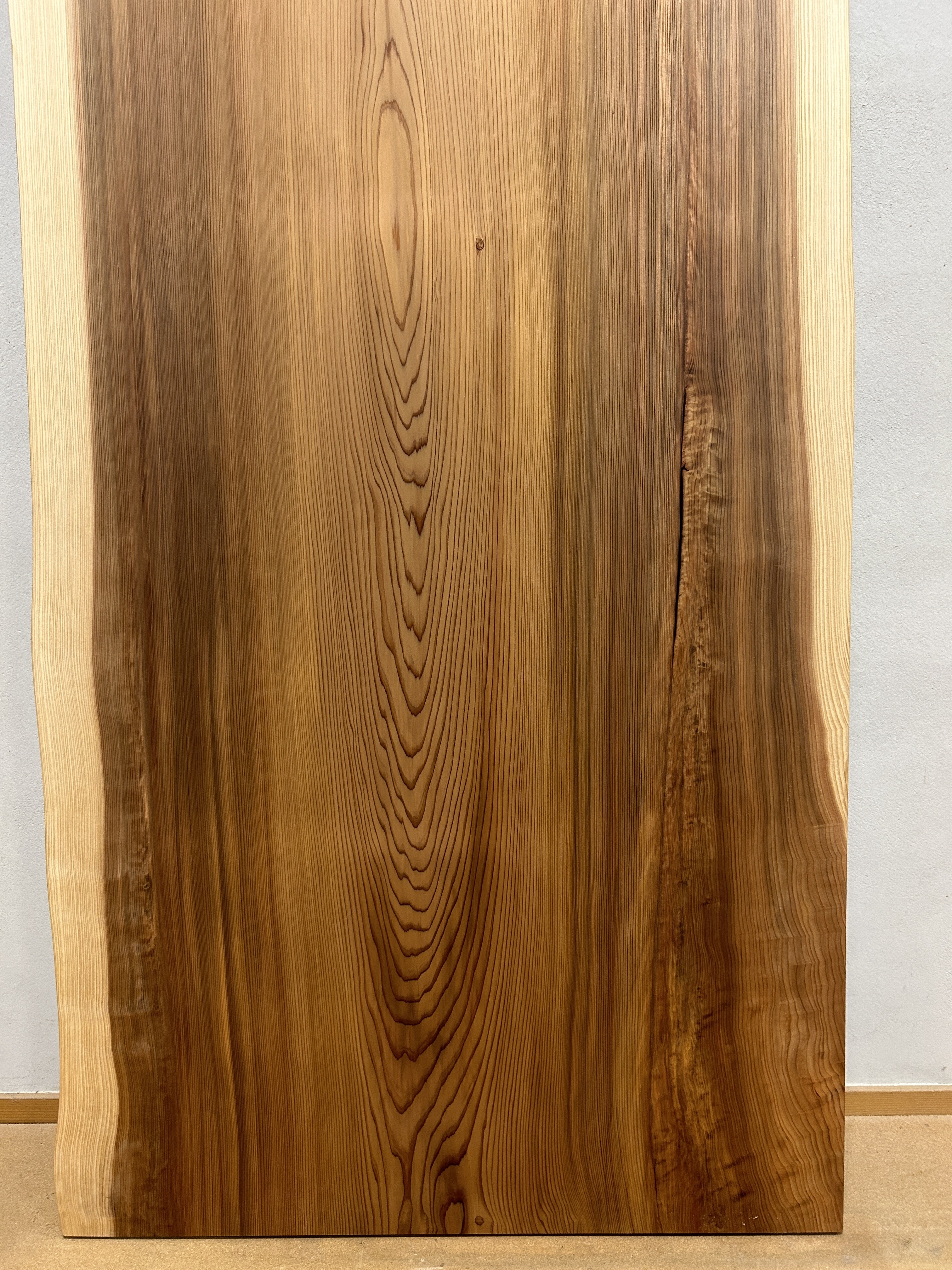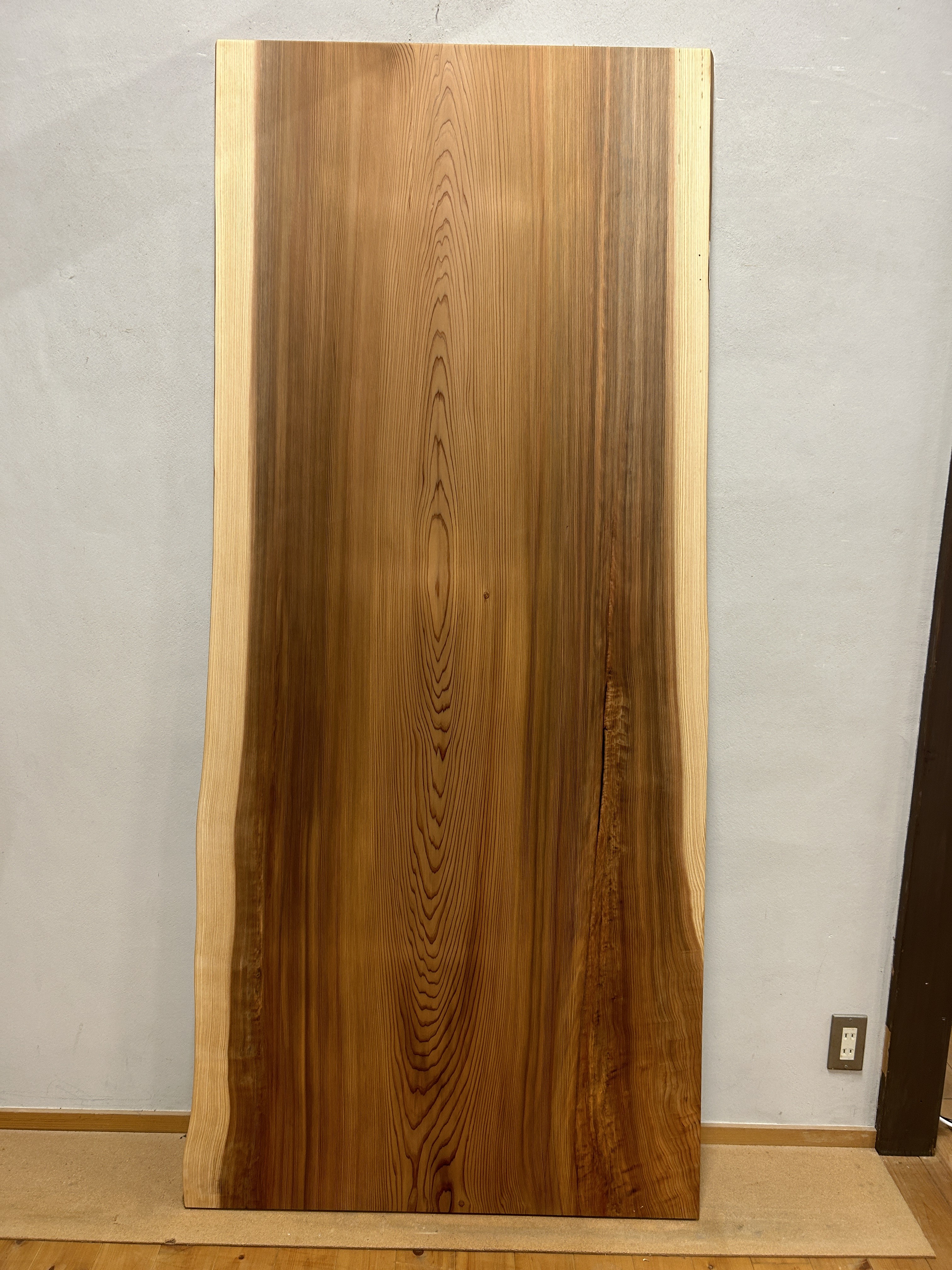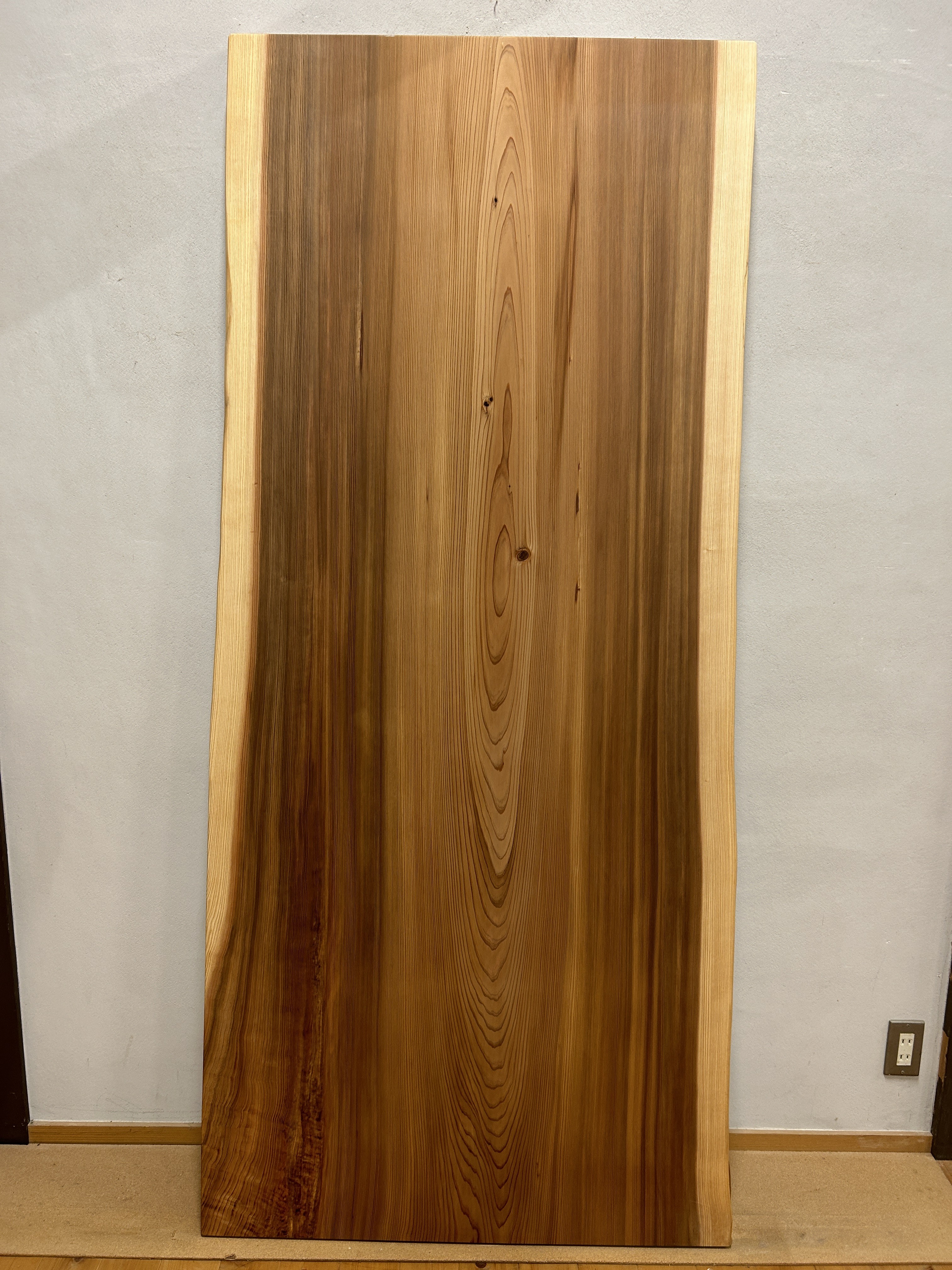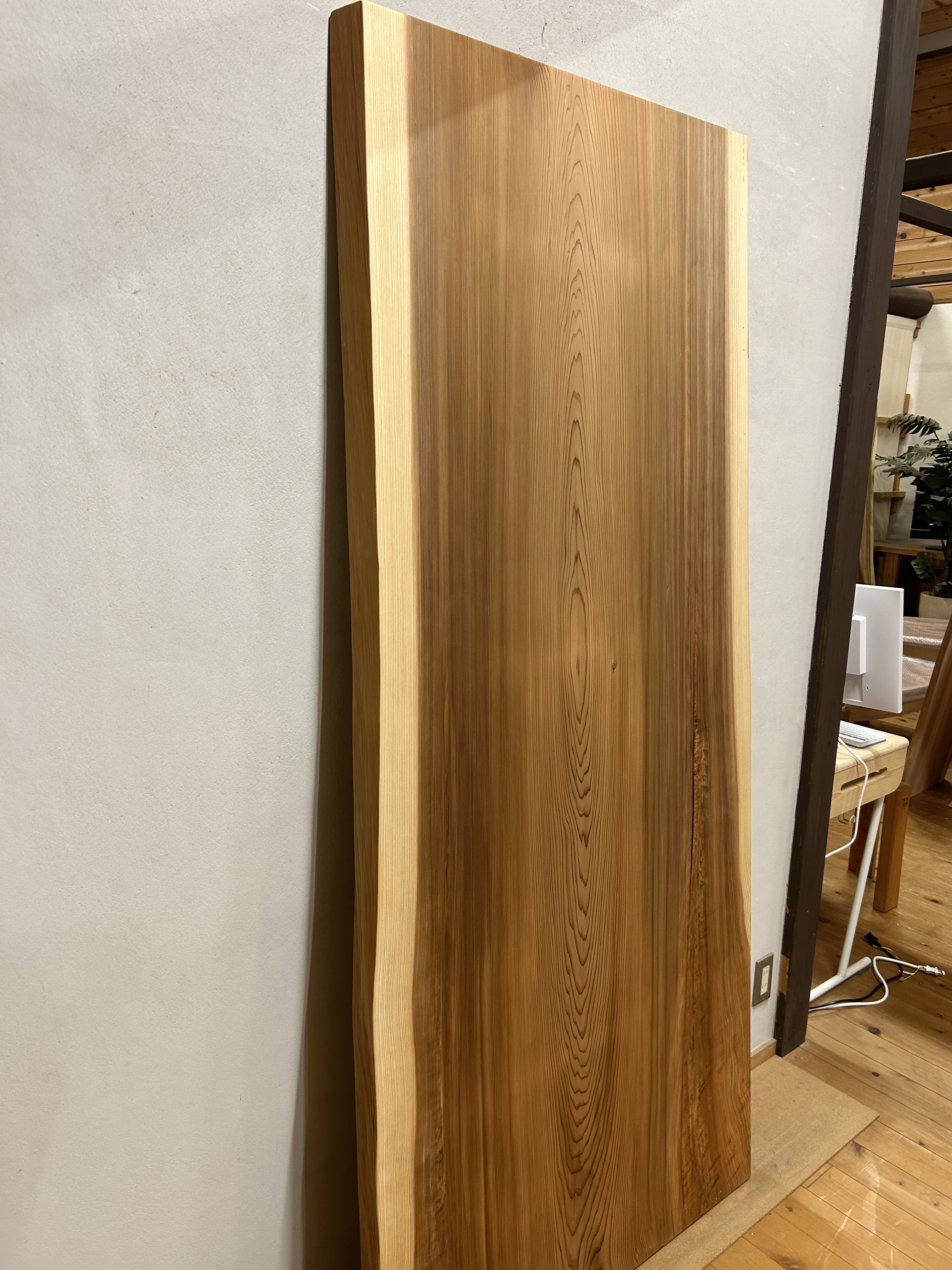 【取引状態】販売済 【名 称】吉野杉一枚板ss-11 【樹 種】吉野杉(国産) 【サイズ】L2000*W780~840~940*t52 【仕上げ】オイルウレタン(オリオ2) 【価 格】¥240,000(税別) 【説 明】年輪の詰まった吉野杉のテーブル用一枚板です。 6人掛けのダイニングテーブルにいかがでしょうか? 少し入皮が入っています。 テーブル脚別途