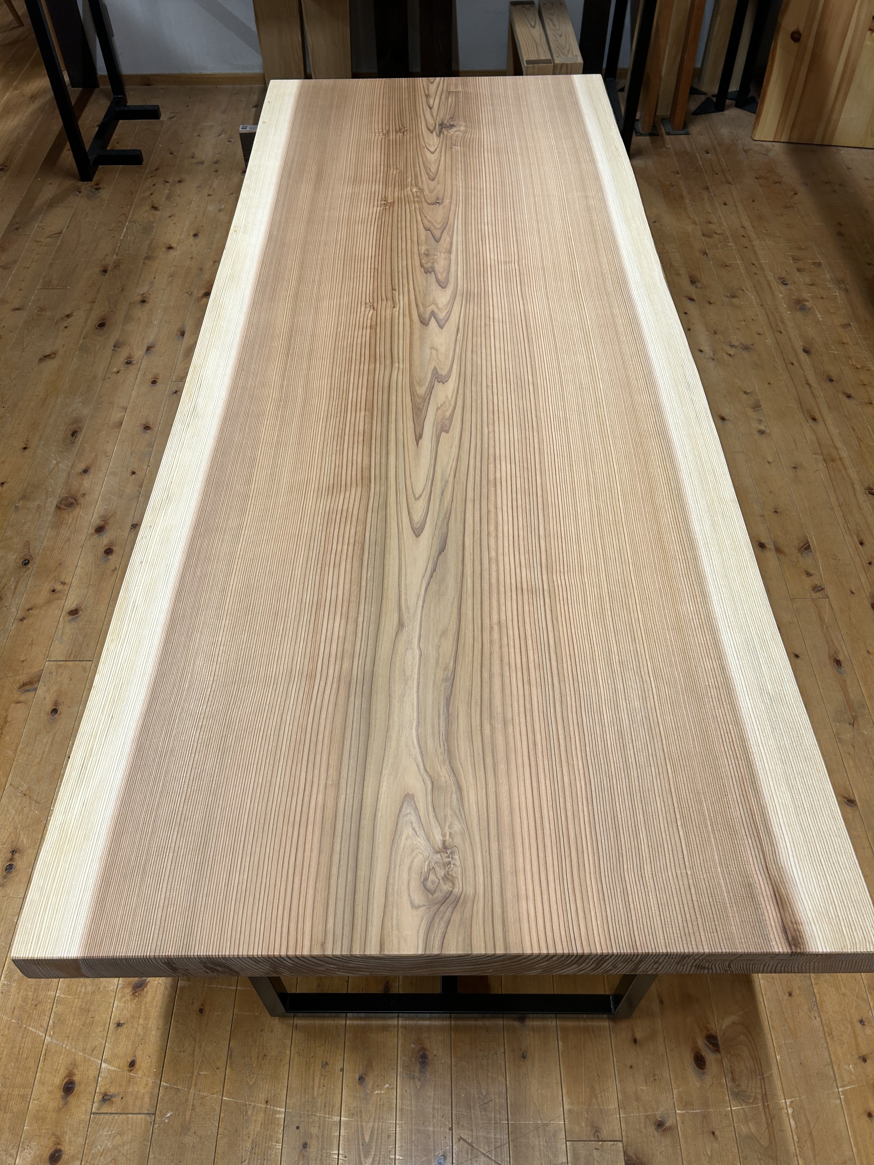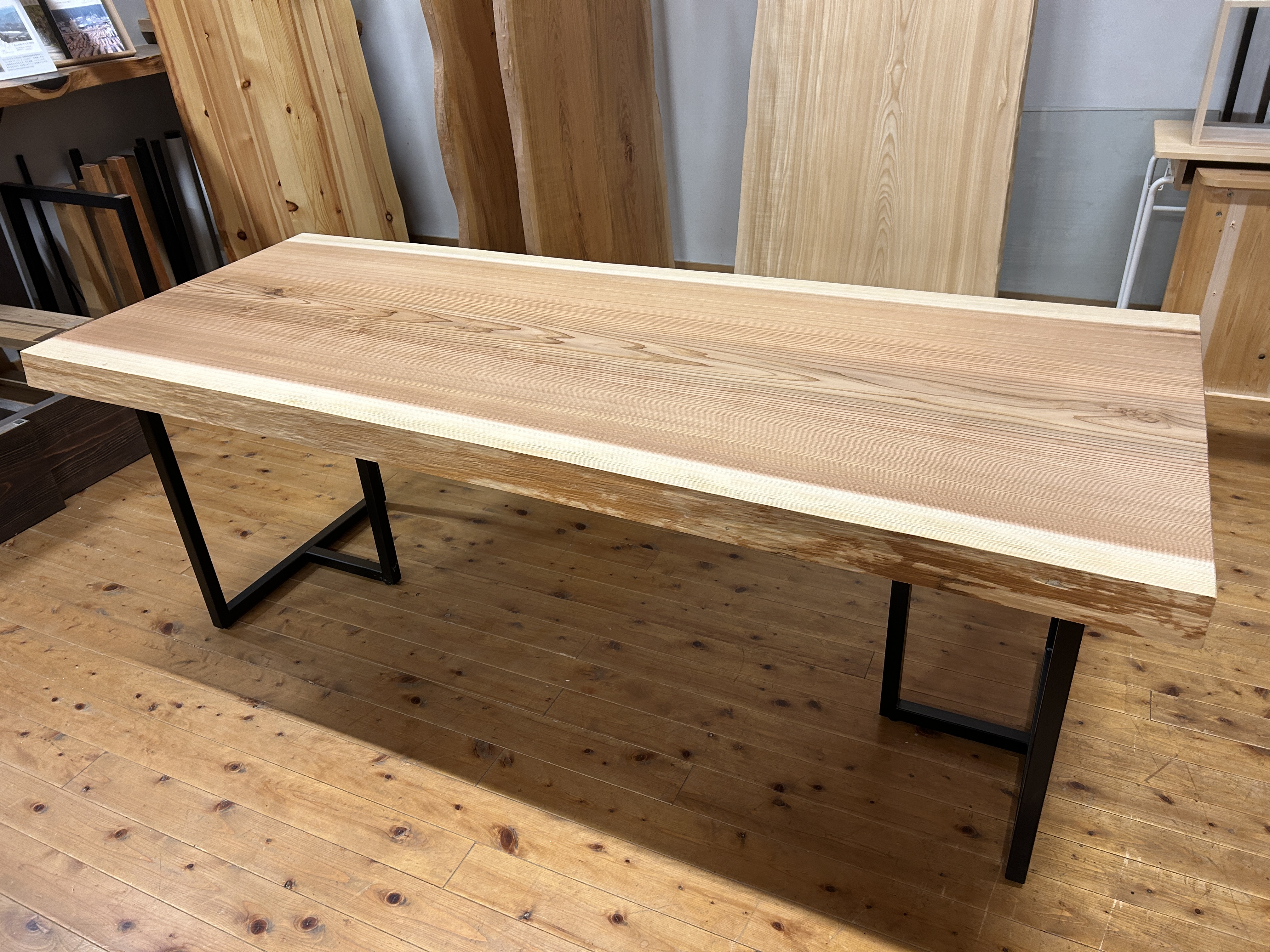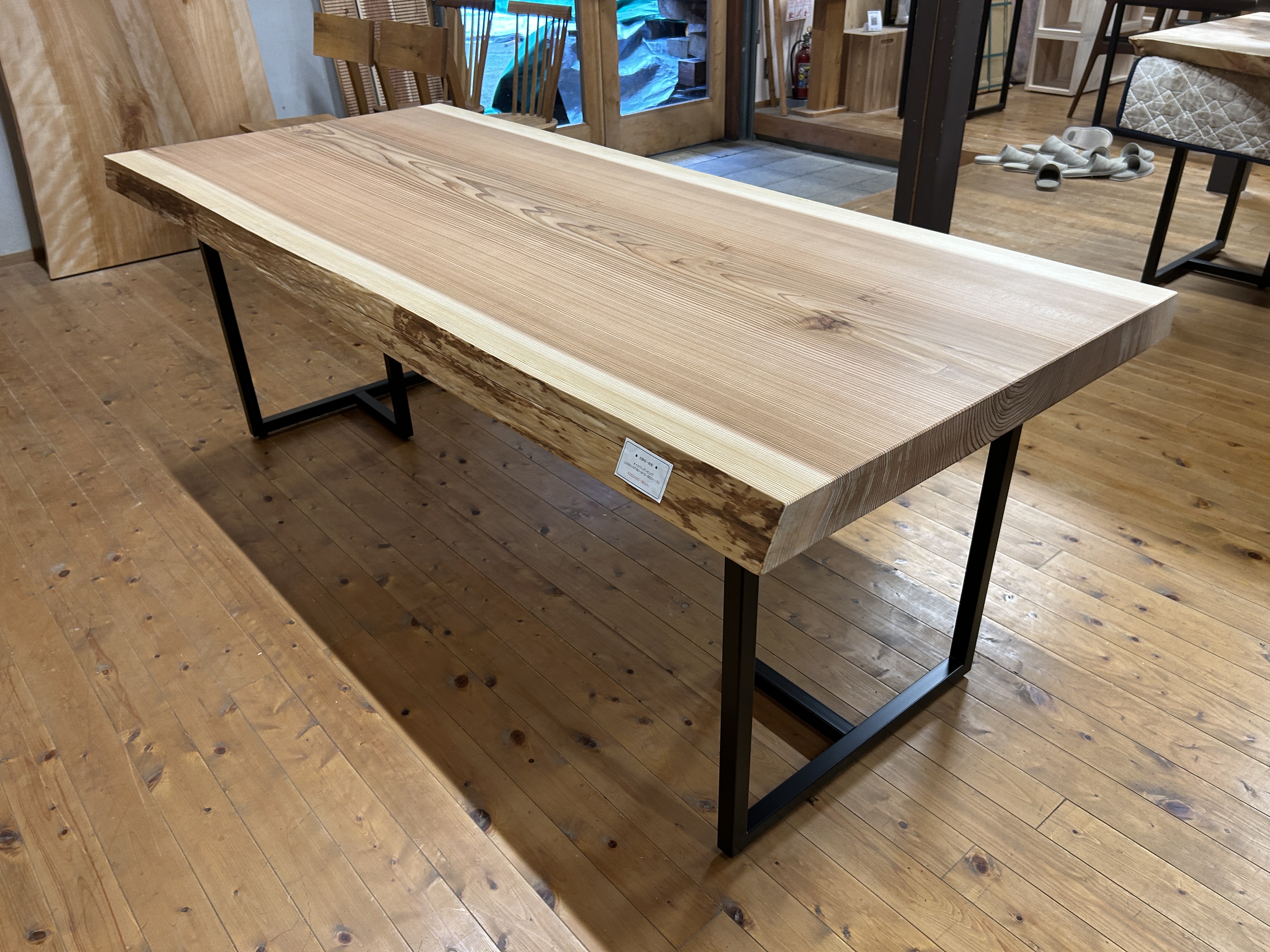 【取引状態】NEW! 【名 称】吉野杉ダイニングテーブルss-12dt 【樹 種】吉野杉(国産) 【サイズ】L2000*W780~815~850*t70 h720 【仕上げ】オイルウレタン(オリオ2) 【価 格】¥275,000(税別) 【説 明】厚み70mm、迫力のある吉野杉一枚板のダイニングテーブルです。 座卓用等の脚の変更も可能です。 配送費別途
