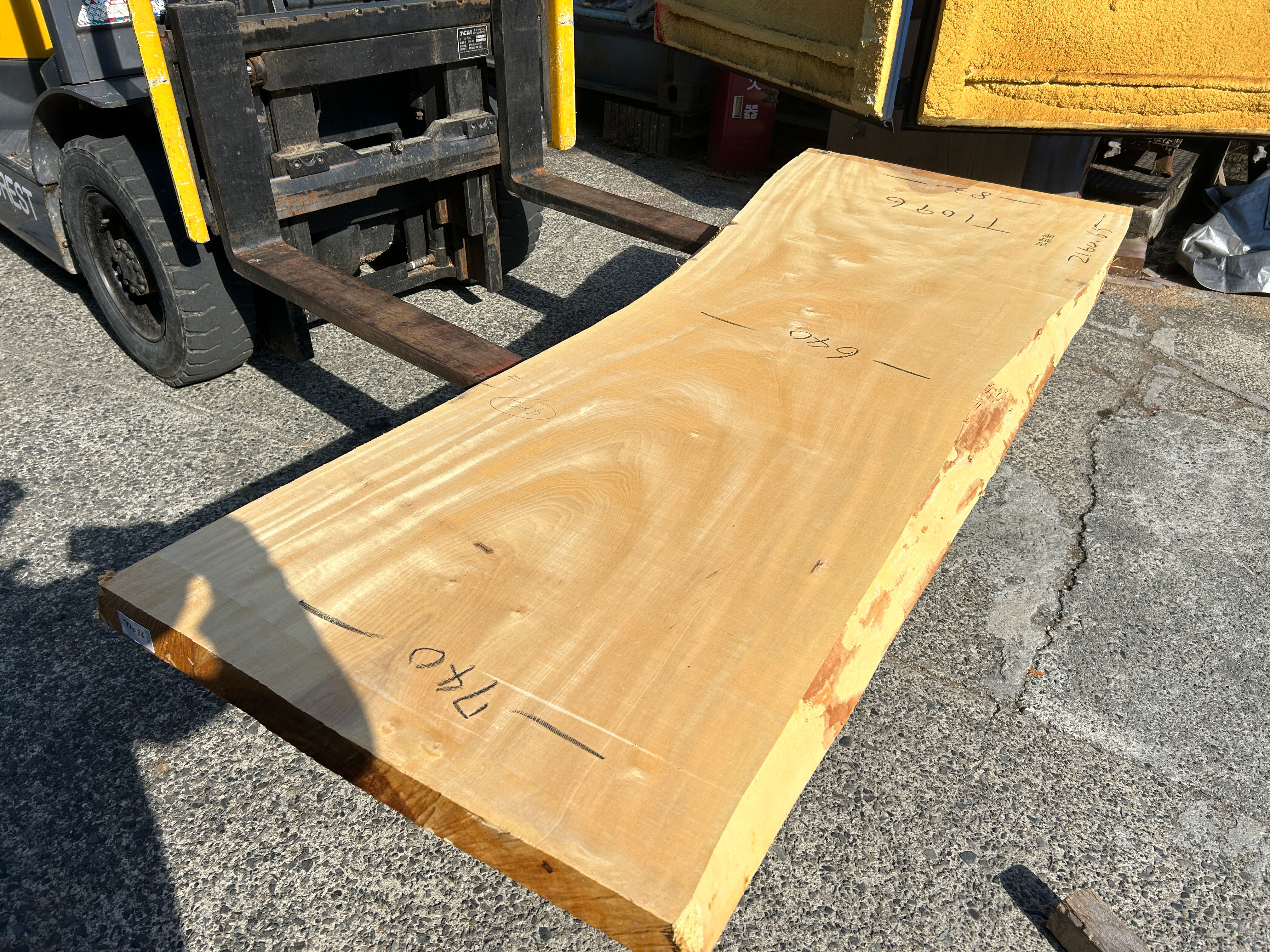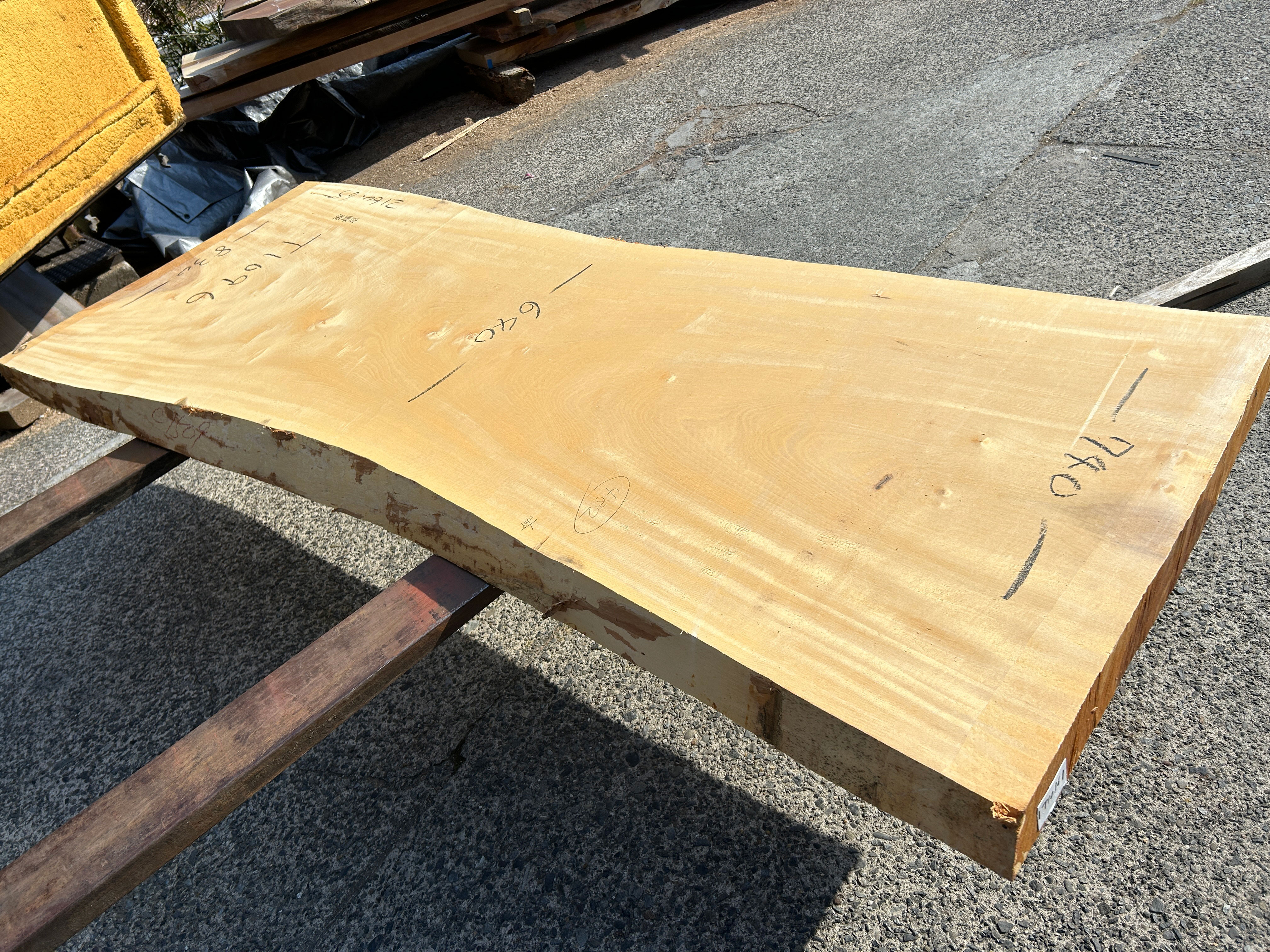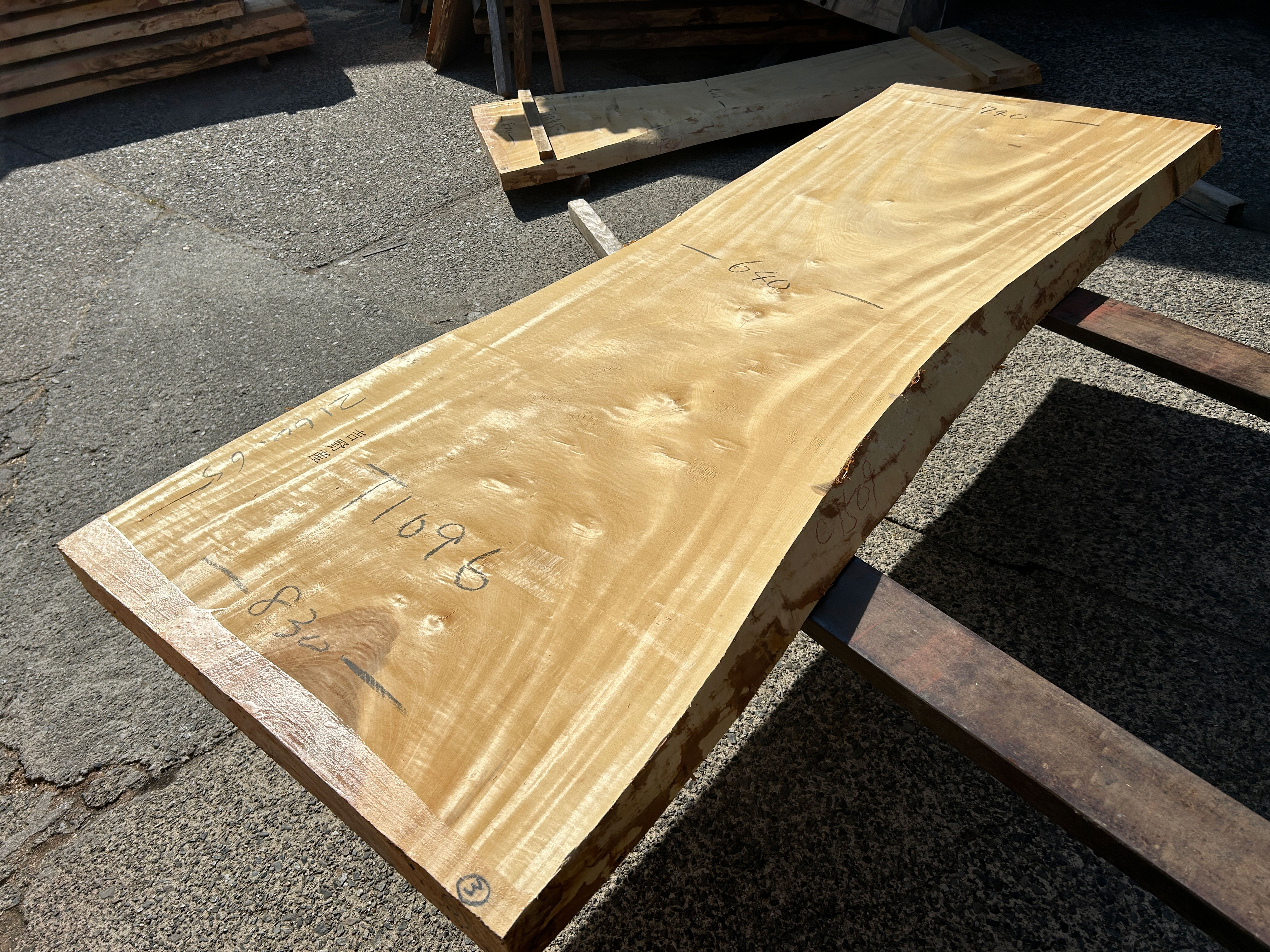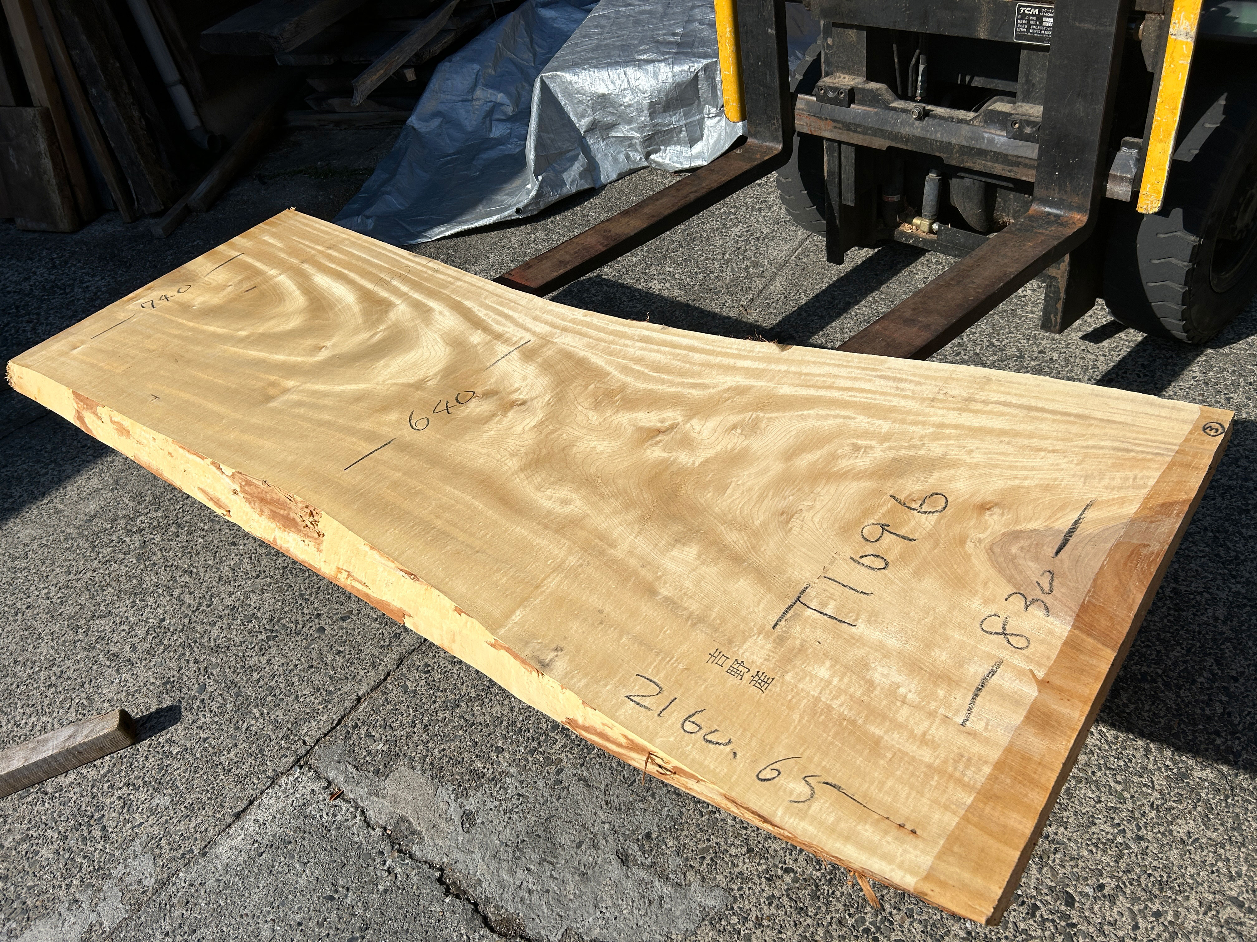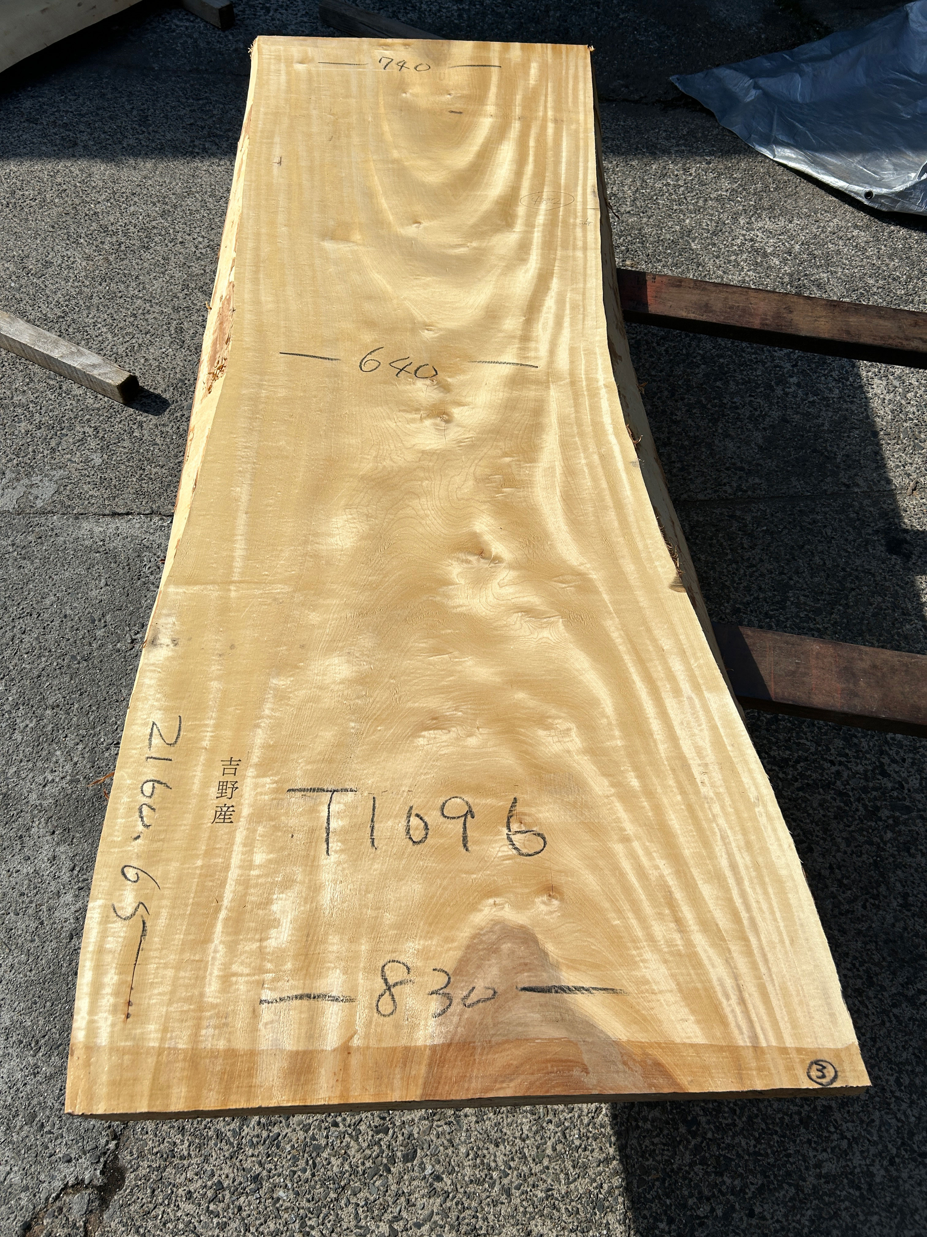 【取引状態】NEW! 【名 称】栃の木一枚板t1096(吉野産) 【樹 種】栃(国産) 【サイズ】L2160*W740~600~830*t65 【仕上げ】仕上げなし 【価 格】¥190,000(税別) 【説 明】綺麗な木目の純白の白栃です。 スリムサイズのテーブルやカウンターにいかがでしょうか? 加工費別途 ¥71,000 塗装までの工賃込み総額 ¥261,000