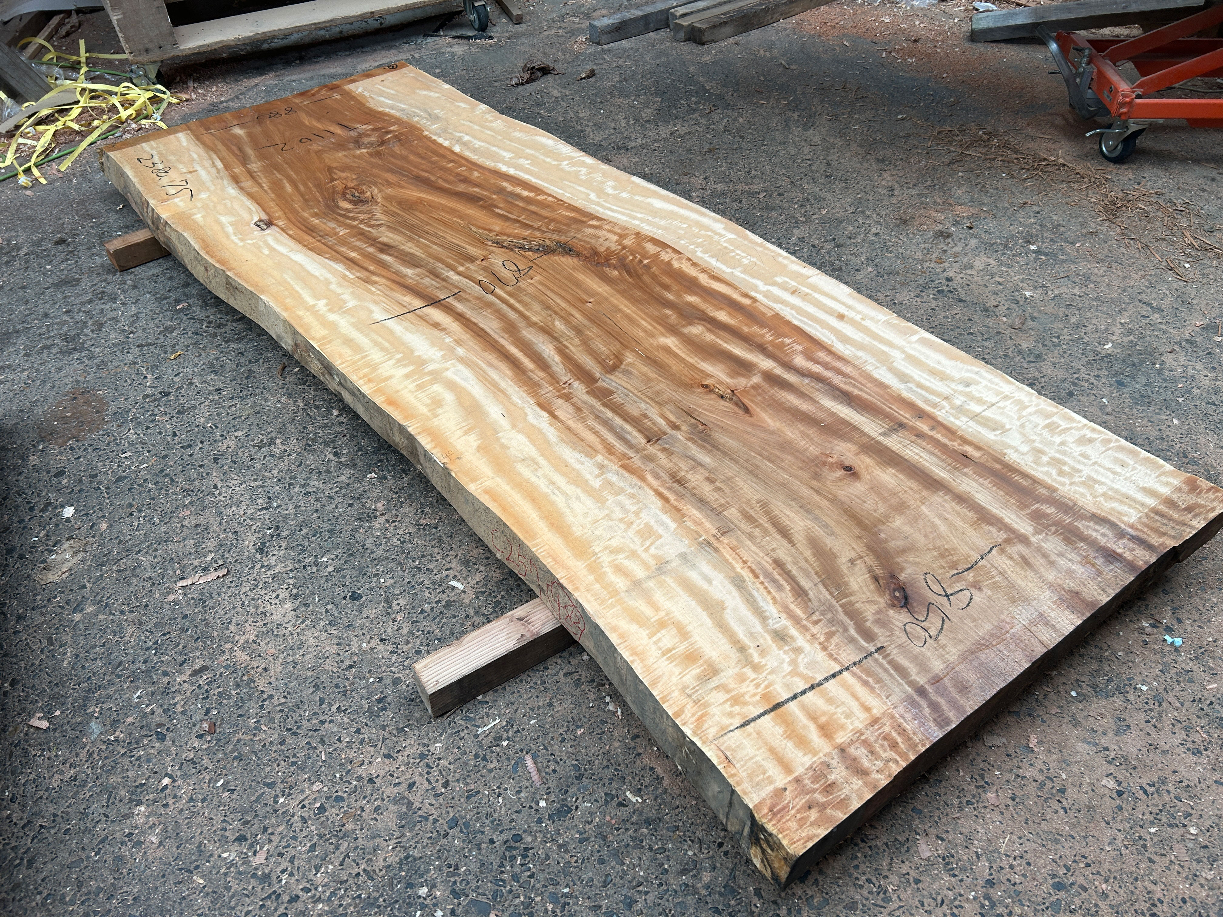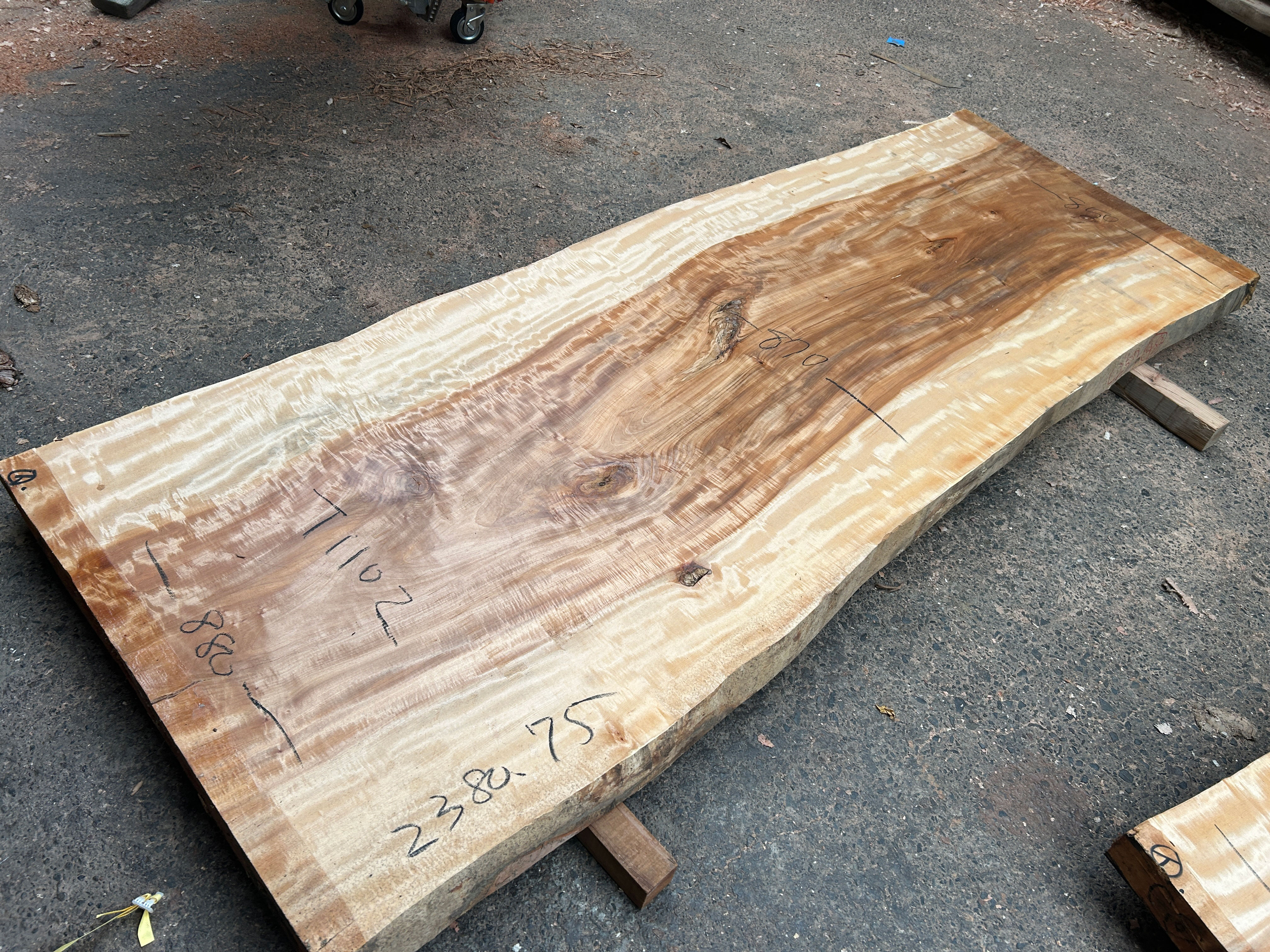 【取引状態】NEW! 【名 称】栃の木一枚板t1102 【樹 種】栃(国産) 【サイズ】L2380*W850~870~880*t75 【仕上げ】仕上げ加工なし 【価 格】¥750,000(税別) 【説 明】栃独特の杢のある一枚板です。 6人~8人掛けのダイニングテーブルにいかがでしょうか? 加工費別途¥89,000 塗装までの加工費を含む総額 ¥839,000